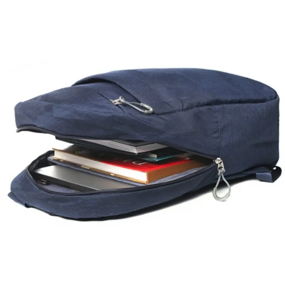 Posee tres cierres, bolsillo frontal, organizador porta bolígrafos, celular y otros.