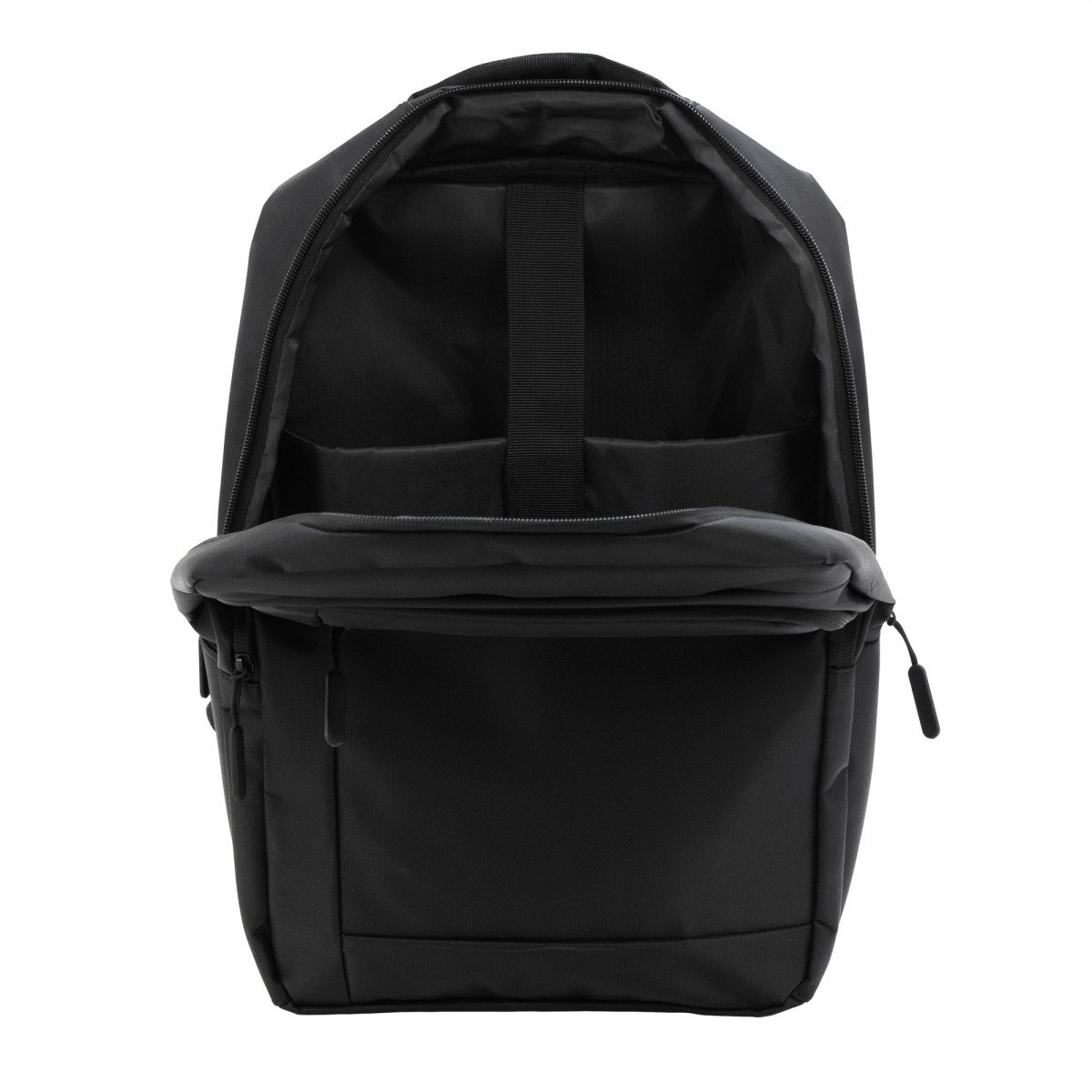 Funcionalidad, elegancia y resistencia.Mochila portanotebook de hasta 15 pulgadas. Compartimento principal con bolsillo acolchado para la notebook. Compartimento frontal con cierre, interior con bolsillos organizadores. Bolsillo en el frente con cremallera plateada reflectante y bolsillo lateral. Asa superior reforzada, correas ajustables, ambas acolchadas. Tira para sujetar la mochila en la manija extensible de un equipaje de mano. Tiradores de cierres engomadosMedidas: 40 x 28 x 13 cm.