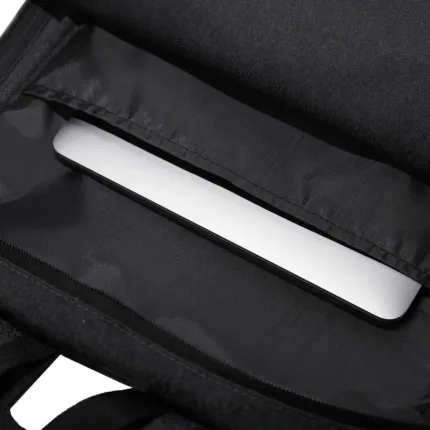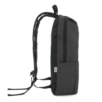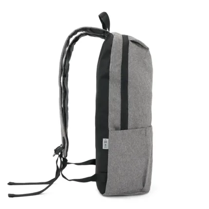 Mochila portanotebook de polyester sustentable RPET, confeccionada a partir de botellas recicladas. Cuenta con un bolsillo exterior tipo sobre. Medidas: 43,5 x 28,5 x 12 cm. Capacidad 14L. Notebook: 15,6″.
