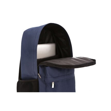 Caracteristicas: Bolsillo externo con fuelle -Una funda interna para computadora portátil 15” y 2 bolsillos de red lateral para botella u otros elementos. -Correas de hombro acolchadas y panel trasero acolchado. -Tira con cierres metálicos terminación níquel. – Capacidad de 14 L -Medidas: 29 x 43 x 11 cm