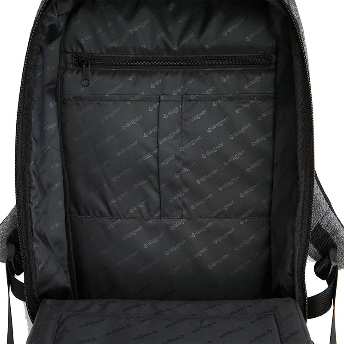 Mochila realizada en Poliester, con respaldo y correas acolchadas. El bolsillo principal con cierre es de apertura de 180°, tiene un espacio completamente acolchado para notebook y 4 bolsillos internos. Además, cuenta con un bolsillo con cierre oculto en el respaldo para proteger objetos valiosos y dos elásticos laterales. Incluye cinta para ser transportada junto con valija carry on. Dimensiones: 29 x 10.5 x 43.5cm,. Capacidad: 13L. Notebook: 15,6″. Wagner.