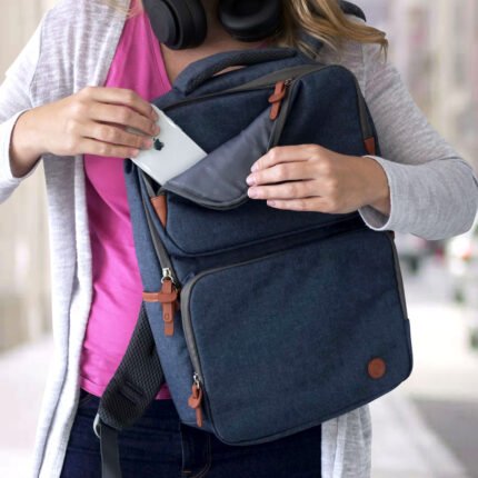 30 x 40 x 10 cm. Capacidad 12 litros. Poliéster 600D + Nylon + Poliuretano.. Mochila urbana portanotebook con 2 bolsillos frontales y múltiples compartimentos internos acolchados. Posee espacio para tablet y notebook de 15″.