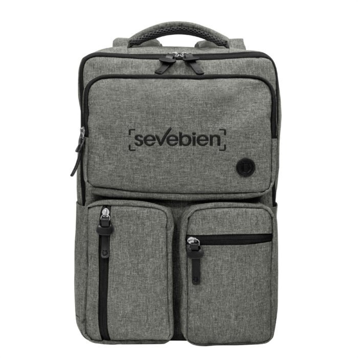 27 x 41 x 10 cm. Capacidad 12 litros. Poliéster 600D Bicolor + Nylon + Poliuretano. Mochila portanotebook de hasta 15,6 pulgadas. Compartimento principal con bolsillos acolchados para notebook y tablet con cinta elástica de velcro. 3 bolsillos delanteros con cierre y 2 bolsillos laterales. Manija y correas acolchadas, hebillas plásticas y cierres metálicos con tiradores en poliuretano. Espalda acolchada. Incluye tira para sujetar la mochila en la manija extensible de un equipaje de mano.
