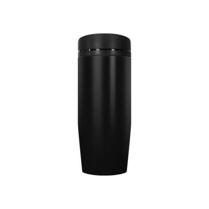 Ø 6 x 19,5 cm. Capacidad 350 ml.  Acero inoxidable. Mug doble pared Interior acero 304 y exterior acero 201. Tapa a rosca, botón para abrir y cerrar. Lazo para sujetar en la muñeca. Base antideslizante. Mantiene las bebidas frías o calientes por más tiempo. Presentación en caja de regalo.