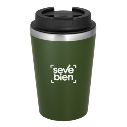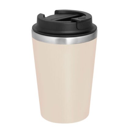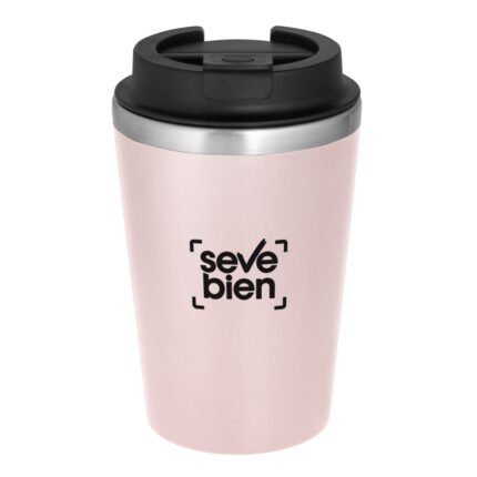 Disfruta de tus bebidas sin derrames y sin preocupaciones.Mug doble pared. Interior de acero inoxidable 304 y exterior de polipropileno con acabado mate. Tapa de polipropileno con anillo de silicona y seguro antiderrame. Base antideslizante. Medidas: Ø 8,9 cm x 15 cm.