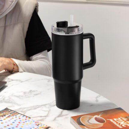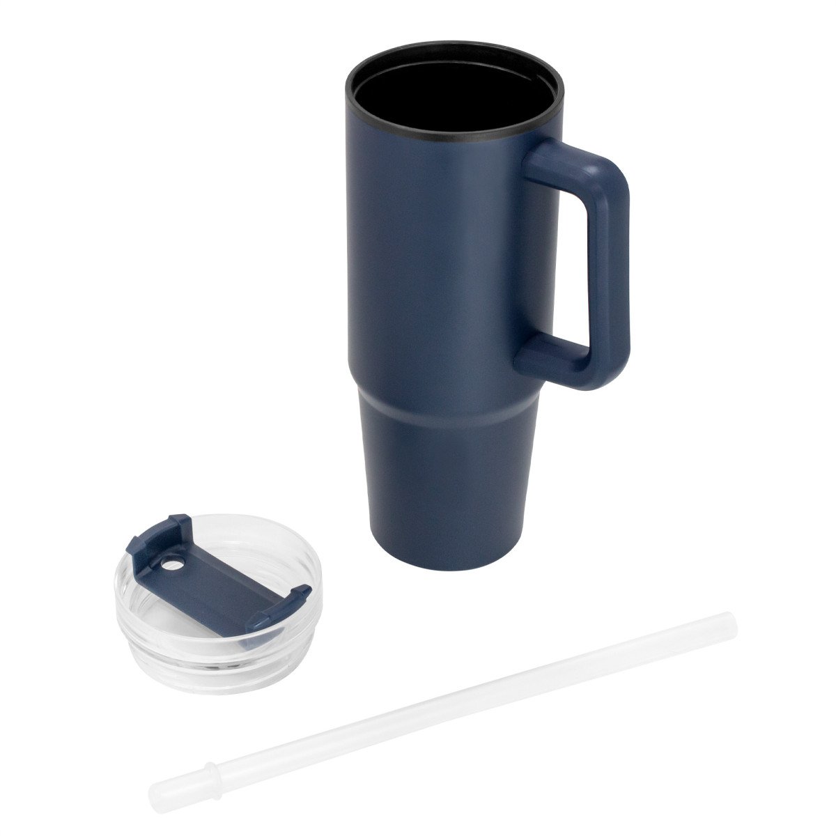 El acompañante ideal para cualquier ocasión. Mug doble pared con sorbete. Interior de plástico Polipropileno y exterior de acero 201. Tapa plástica transparente a rosca con anillo de silicona. Cierre giratorio porta sorbete. Sorbete plástico translucido. Pintura exterior con acabado mate. Mantiene las bebidas frías y calientes por más tiempo. Medidas: Ø 8,8 cm x 24 cm.