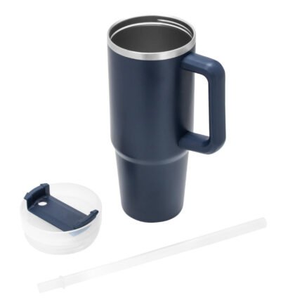 Diseño Térmico. El favorito de quienes nunca se detienen. Mug doble pared, sellado al vacío con sorbete. Tecnología Vacuum. Interior en acero 304 y exterior en acero 201. Tapa plástica transparente a rosca con anillo de silicona. Cierre giratorio porta sorbete. Sorbete plástico translucido. Pintura exterior con acabado mate. Mantiene hasta 12 hs la temperatura de las bebidas calientes y 24 hs de las bebidas frías. Medidas: Ø 8,8 cm x 24 cm.