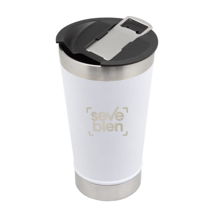 Disfruta de tus bebidas frías o calientes con estilo.Mug doble pared, sellado al vacío. Interior en acero 304 y exterior en acero 201. Tapa plástica con boca ancha a presión con anillo de silicona. incluye abridor de botellas en acero inoxidable 430. Pintura exterior con acabado mate. Mantiene hasta 2 hs la temperatura de las bebidas calientes y 4 hs de las bebidas frías. Medidas: Ø 7,5 x 17 cm.
