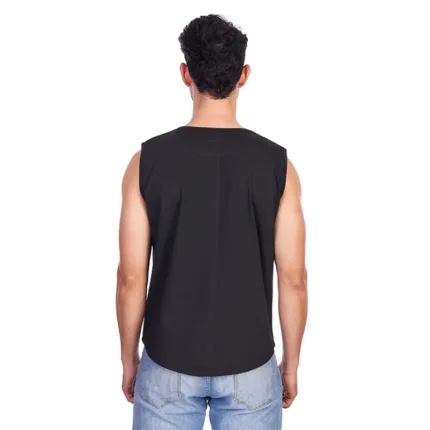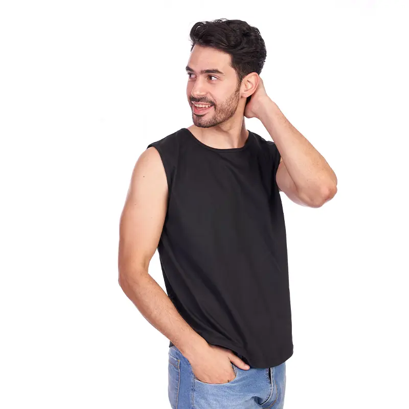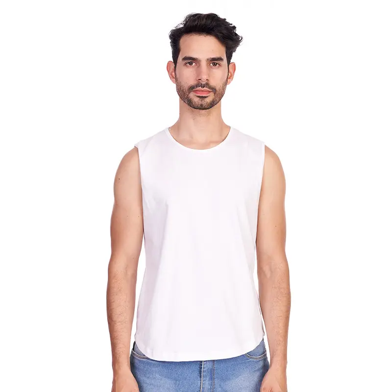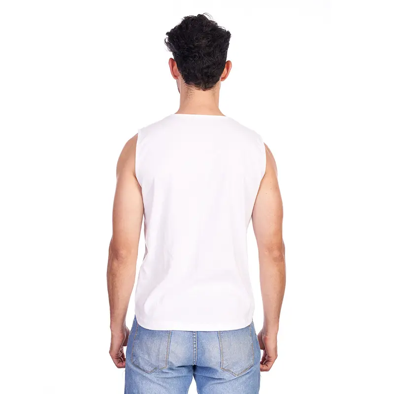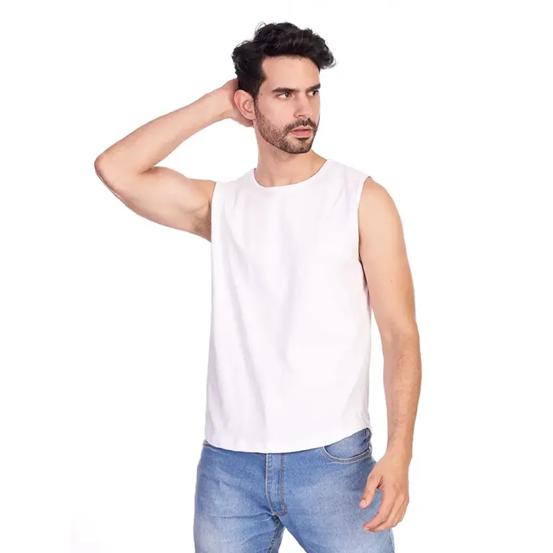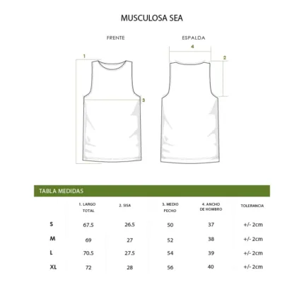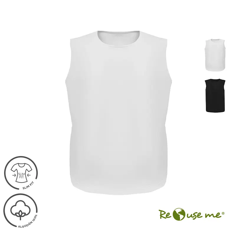Remera musculosa de hombre en corte slim fit, con terminación de cuello y siza con collareta. Esta prenda está confeccionada 100% en algodón 24/1 peinado, un recurso ecológico renovable y sostenible.
