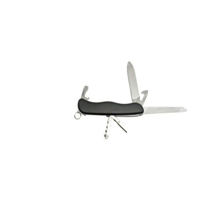 Cuenta con 6 funciones: cuchilla, lima, destapador, saca corcho, enhebrador de agujas y destornillador plano (J166)