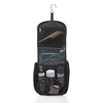Elásticos sujetadores y bolsillo red con percha móvil.