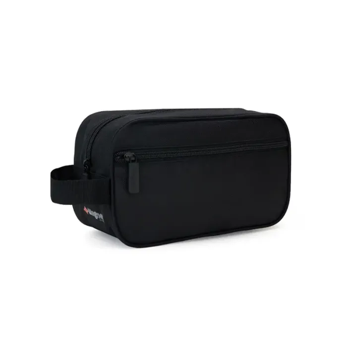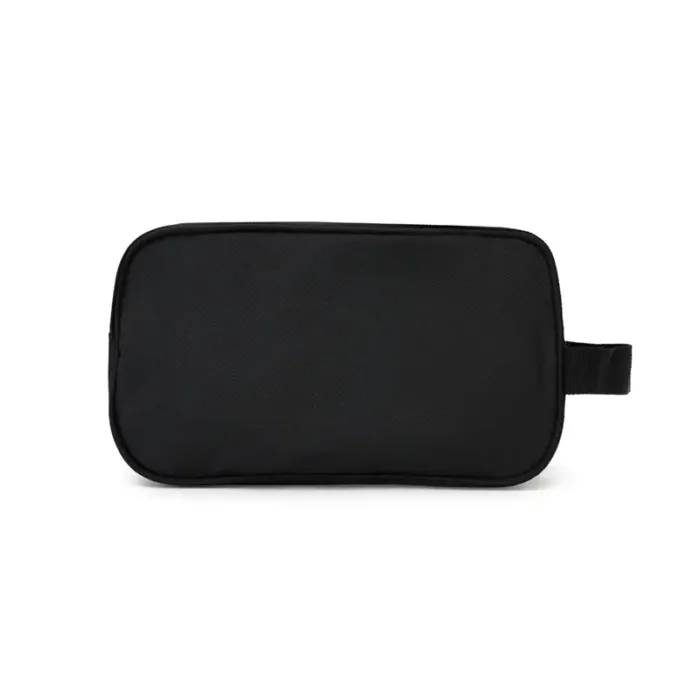 Neceser compacto de viaje fabricado en tela sintética de alta durabilidad. Cuenta con cierre superior, bolsillo frontal con cierre y asa lateral reforzada. Es ideal para organizar artículos de cuidado personal en viajes, escapadas de fin de semana o para llevar al gimnasio.