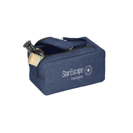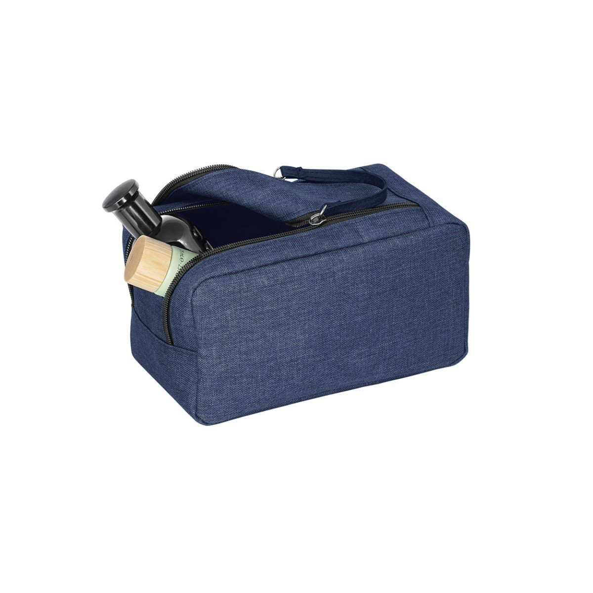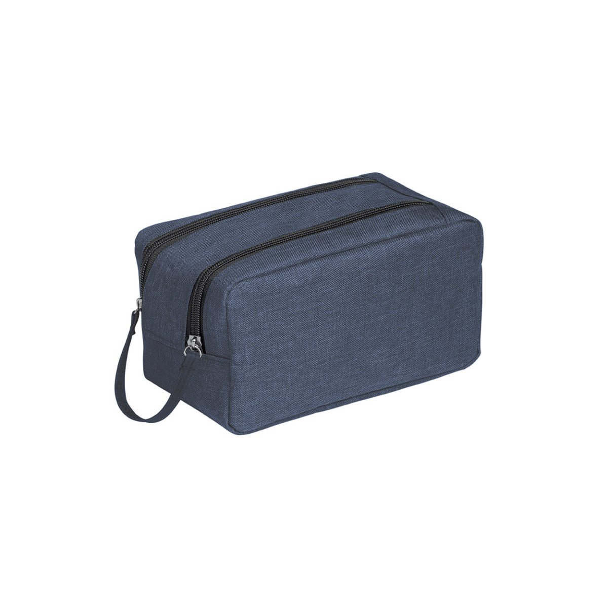Necessaire fabricado en poliéster 300D de alta densidad, con manija, cierre doble e interior forrado.