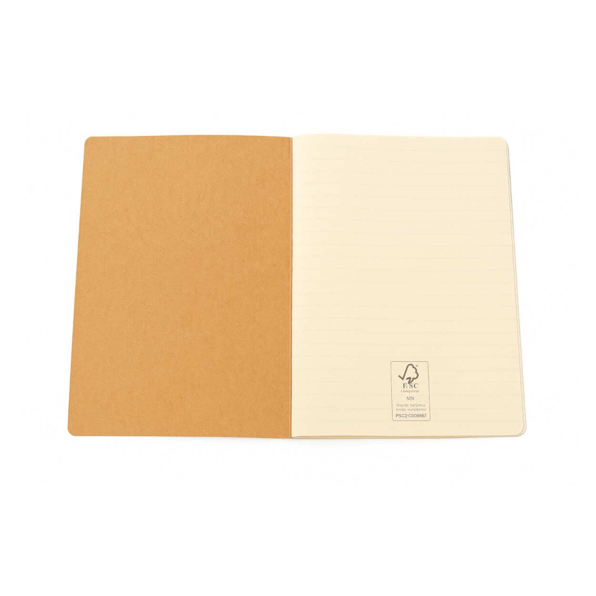 Cuaderno de tapa blanda de Cartón natural reciclado. 40 páginas rayadas. Terminación de puntas redondeadas y costura visible en el acabado. Certificacion FSC en la primera hoja. Tamaño A5 . Papel: 70 g/m2