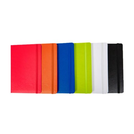 Tapa Dura Encuadernado lateral.Cantidad de hojas: 80 hojas rayadas color marfilSeparador de tela, cierre elástico de color y Bolsillo incluido Ideal para eventos y kit de nuevos ingresosMaterial: CartónPapel: 70 g/m2.