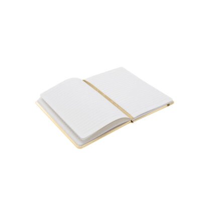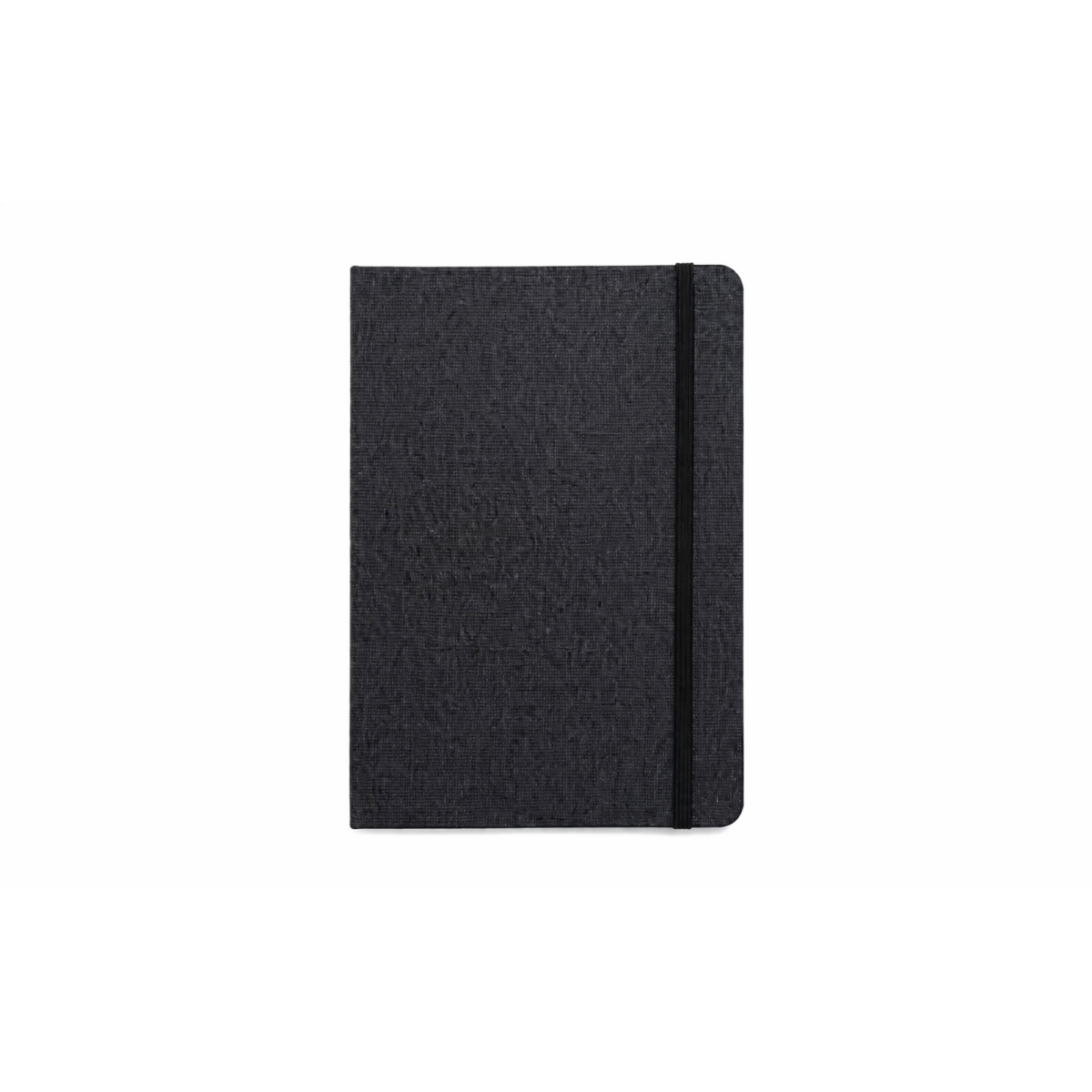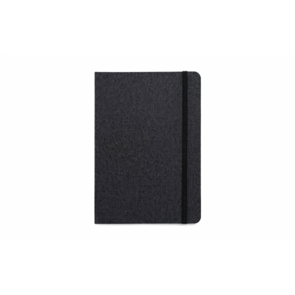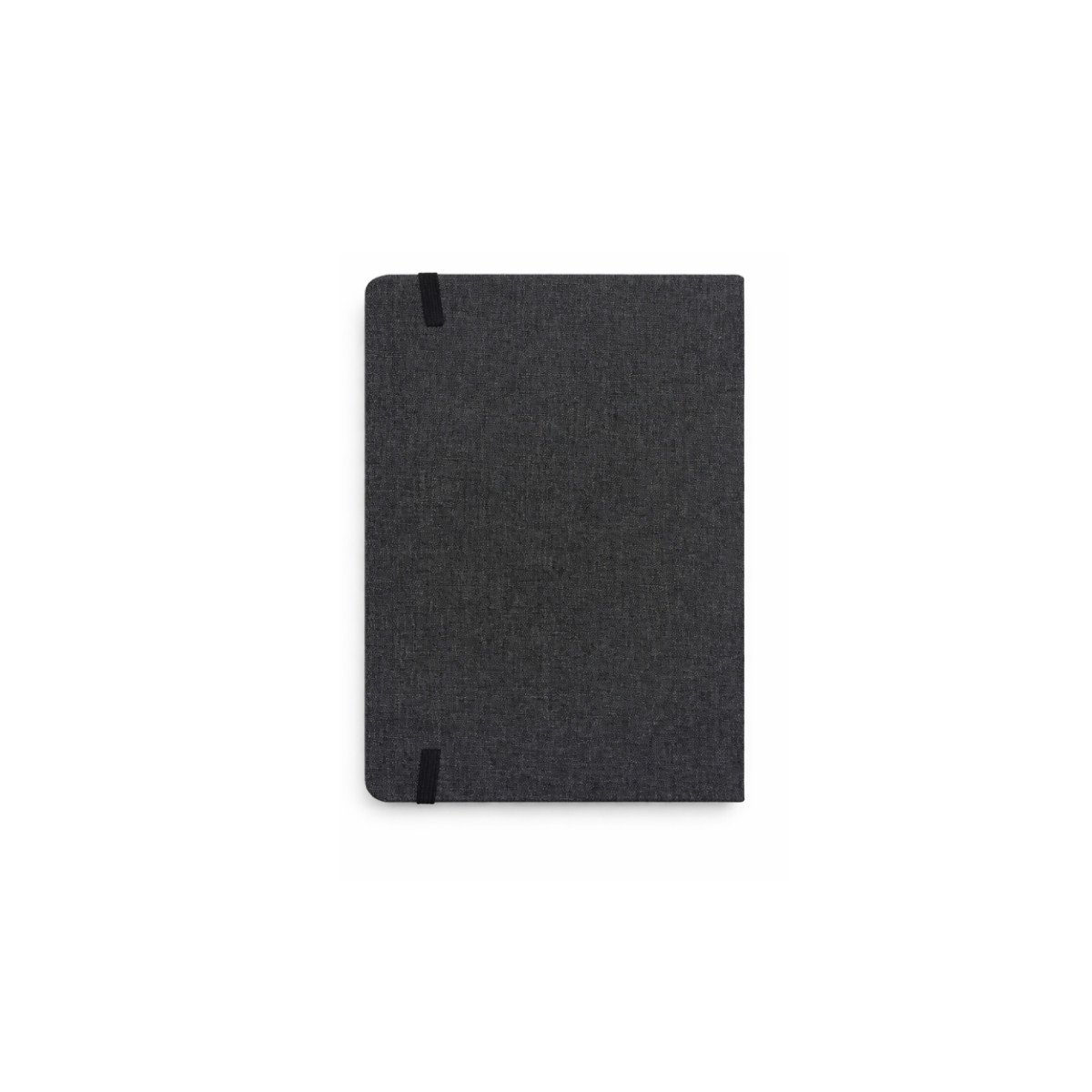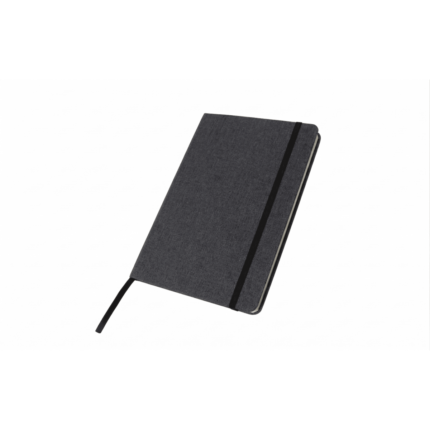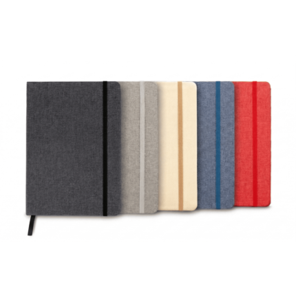 Tapa dura con cartón de 1,5 mm revestido en tejido RPET elaborado con material reciclado. Cuenta con 96 páginas rayadas + 2 páginas en blanco, cinta marcapáginas y cierre elástico al tono. Incluye sobre interior en la parte posterior de la tapa. Certificación FSC en la primera hoja. Todos los cuadernos vienen en bolsa de polipropileno individual. Ideal para acciones sustentables, kits corporativos y programas de responsabilidad ambiental. Papel: 70 g/m² con certificación FSC