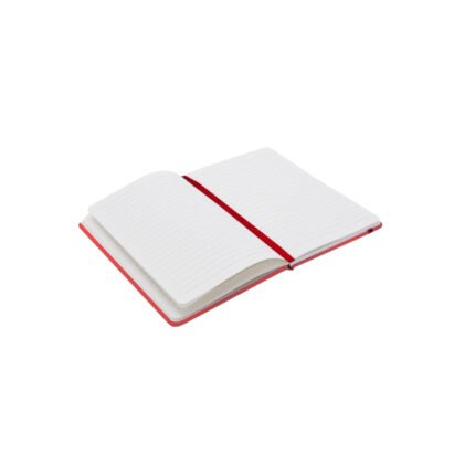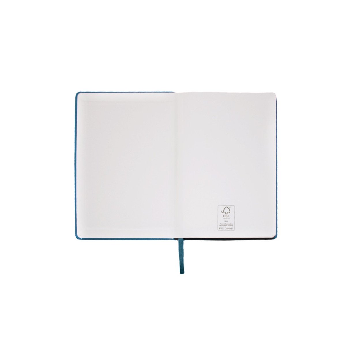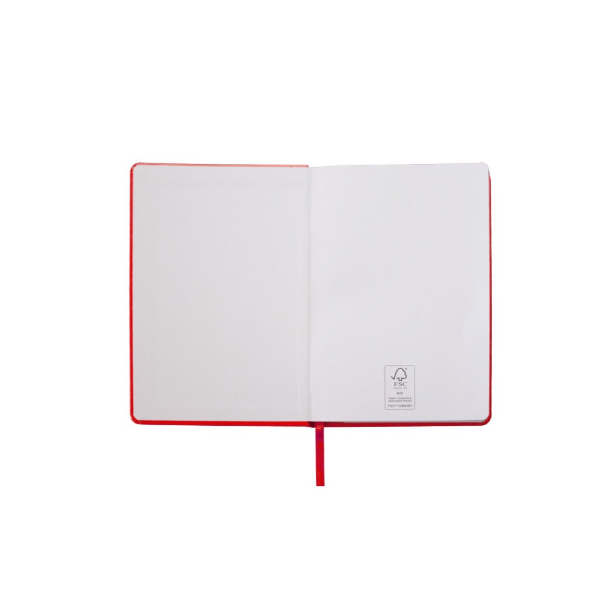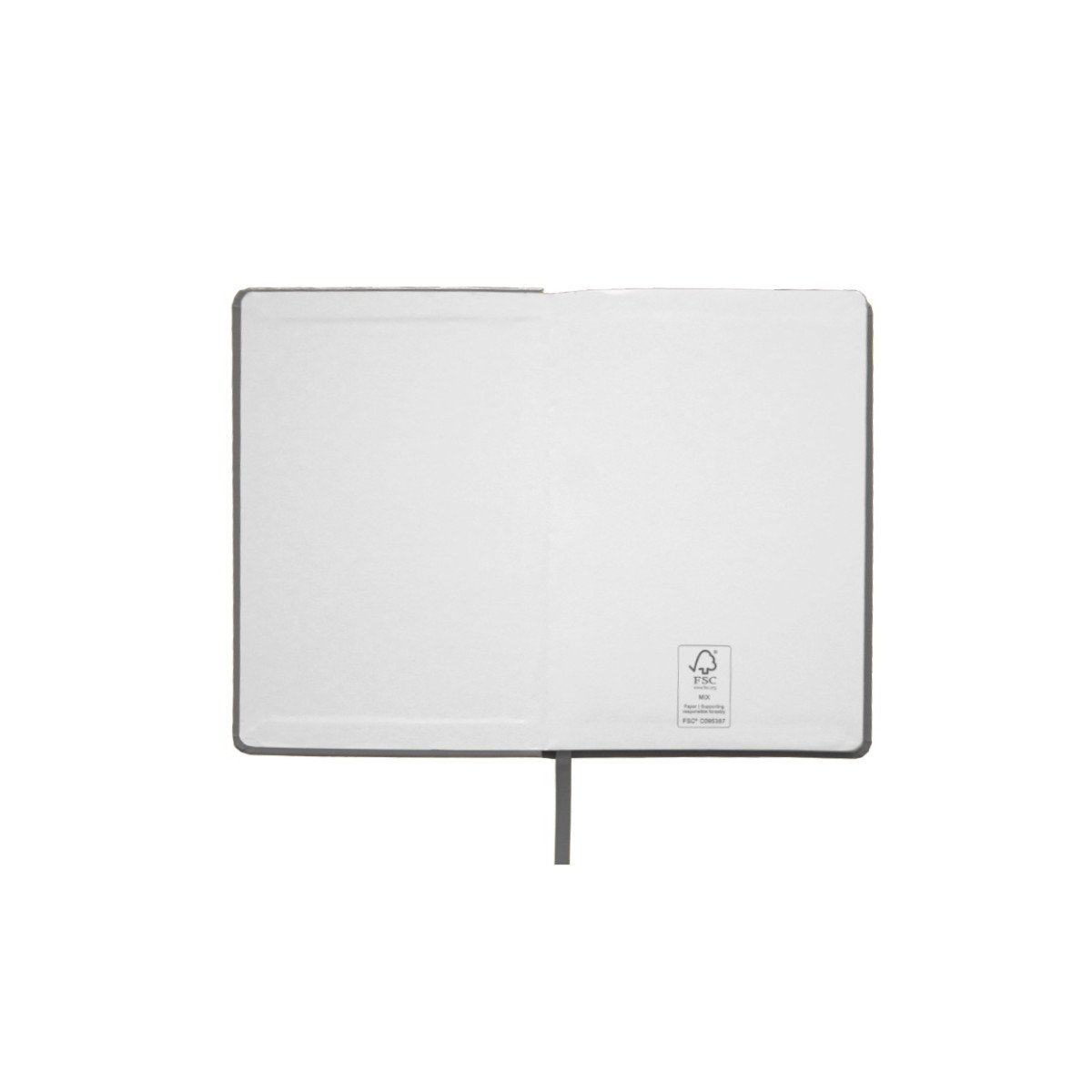 Tapa dura con cartón de 1,5 mm revestido en tejido RPET elaborado con material reciclado. Cuenta con 96 páginas rayadas + 2 páginas en blanco, cinta marcapáginas y cierre elástico al tono. Incluye sobre interior en la parte posterior de la tapa. Certificación FSC en la primera hoja. Todos los cuadernos vienen en bolsa de polipropileno individual. Ideal para acciones sustentables, kits corporativos y programas de responsabilidad ambiental. Papel: 70 g/m² con certificación FSC