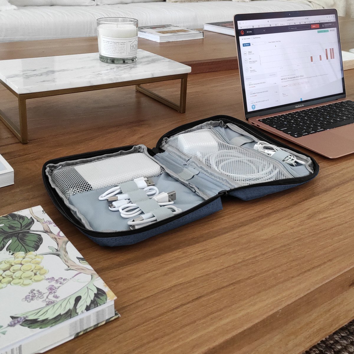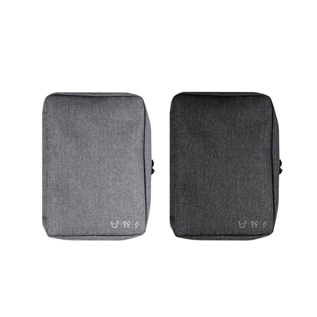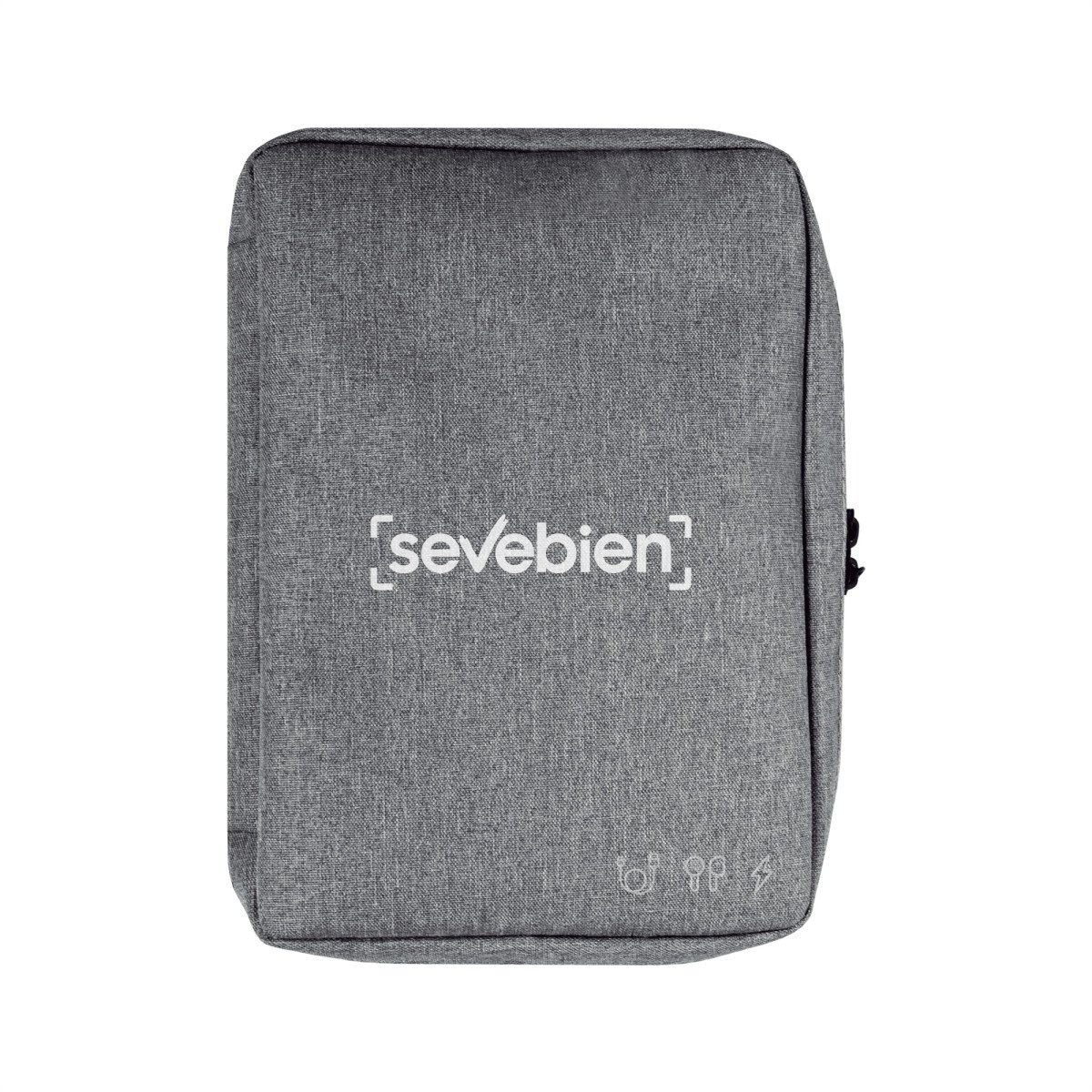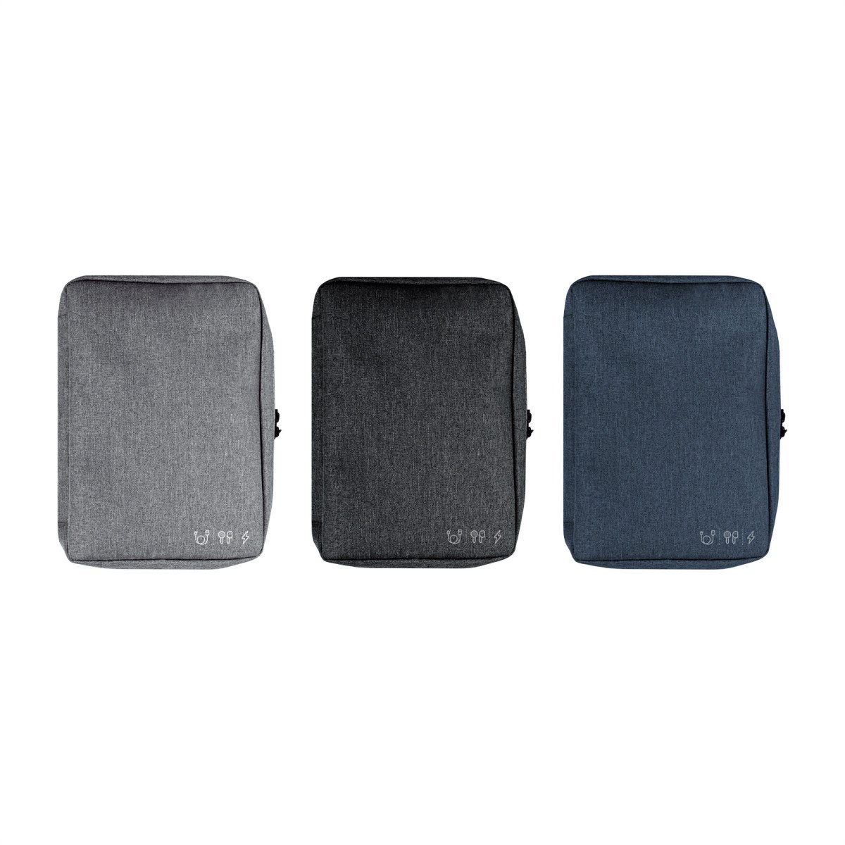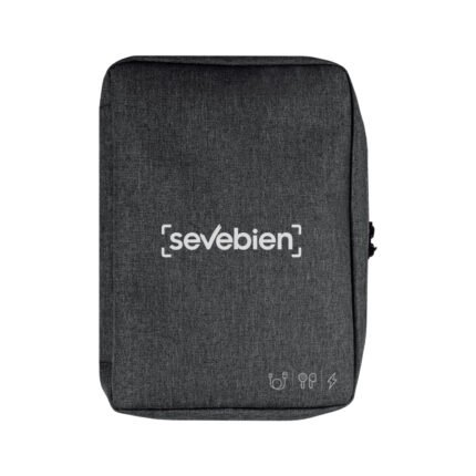16,5 x 23 x 4 cm.Poliéster. Organizador para cables y accesorios. Cuenta con dos bolsillos de red con cierre. 4 elásticos que permiten enrollar y guardar los cables, 1 elástico porta bolígrafo y 2 elásticos amplios. NO INCLUYE ACCESORIOS.