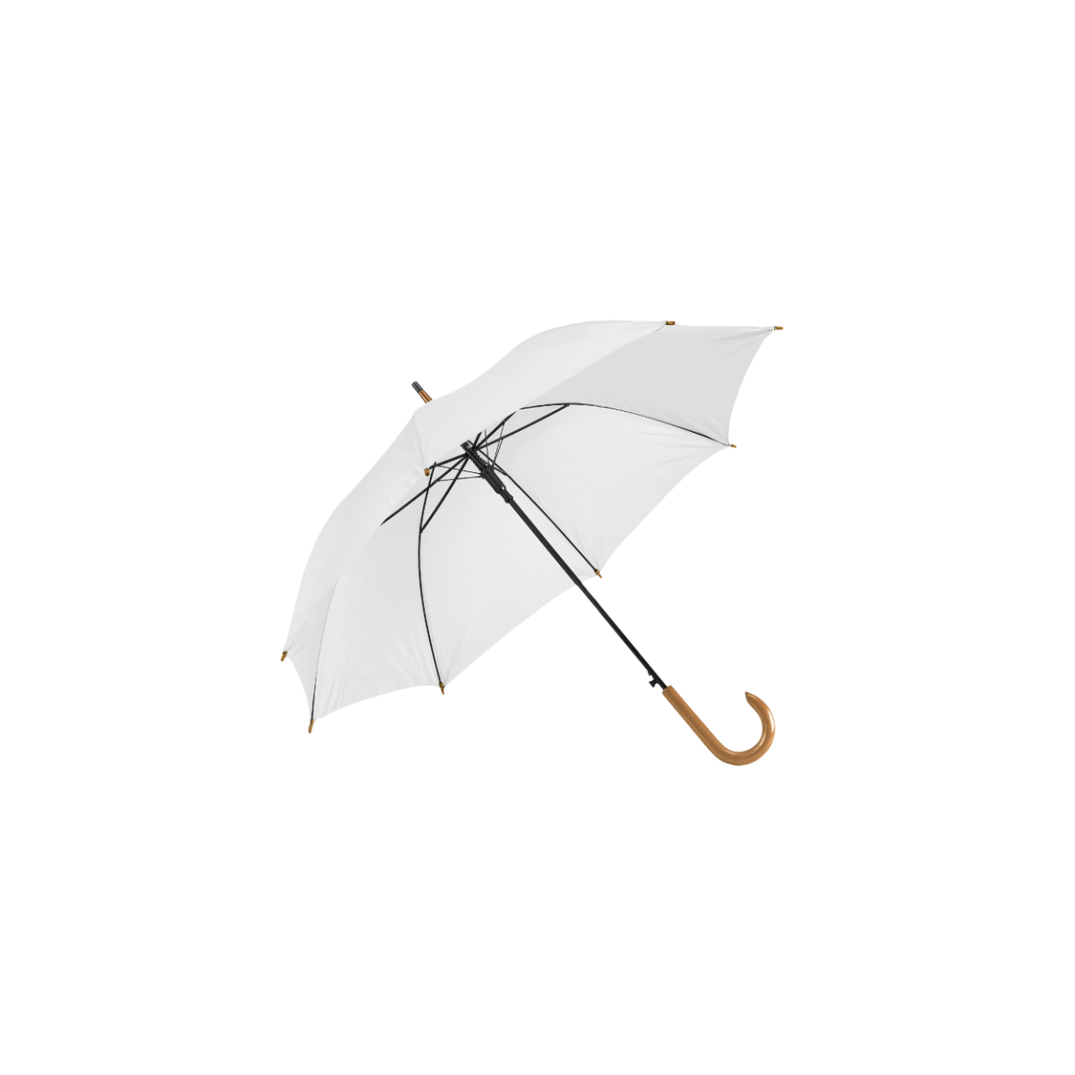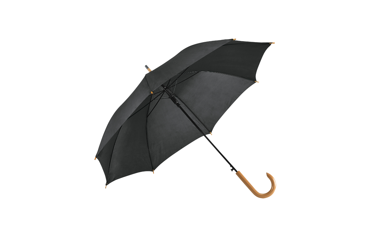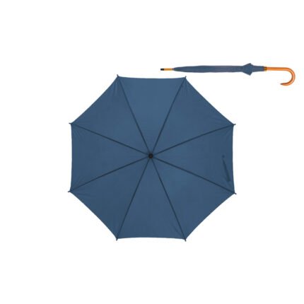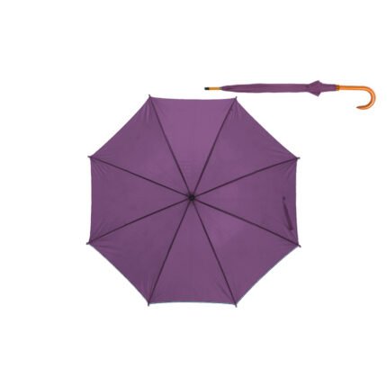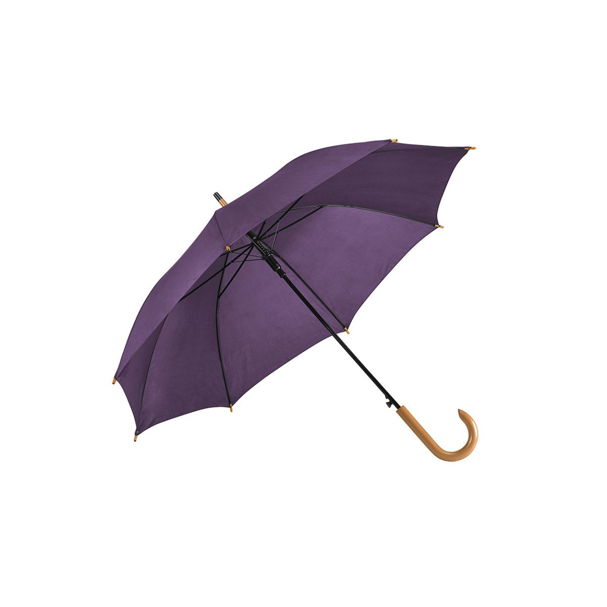 Paraguas automático de poliéster 190T. Puntera y mango curvo de madera. 8 Gajos.