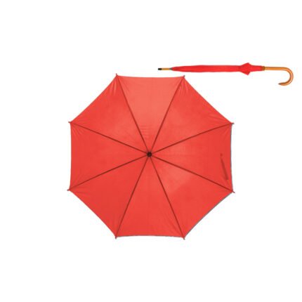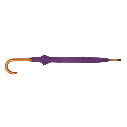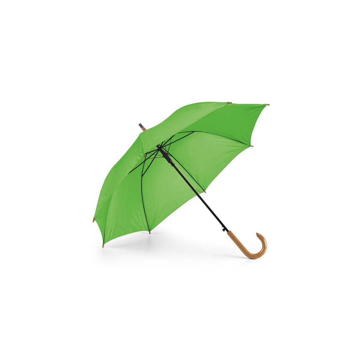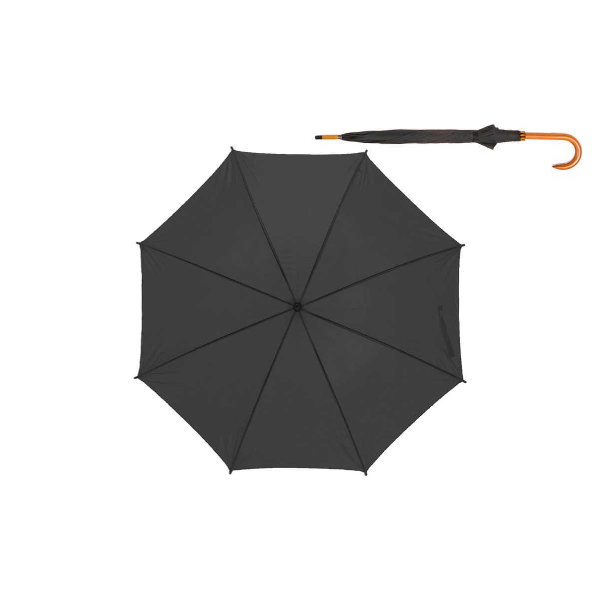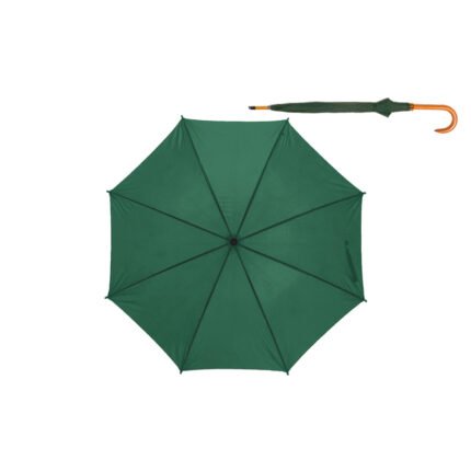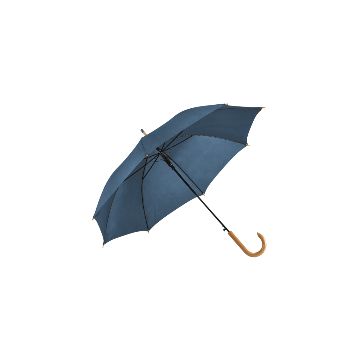 Paraguas automático de poliéster 190T. Puntera y mango curvo de madera. 8 Gajos.