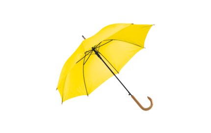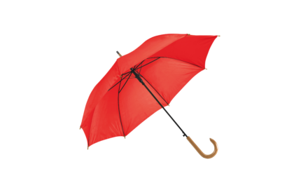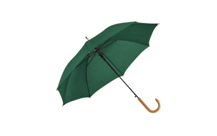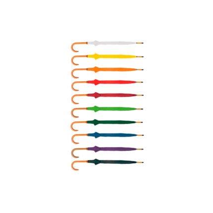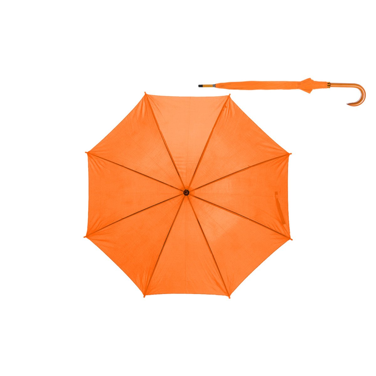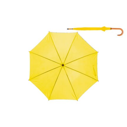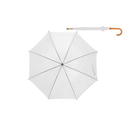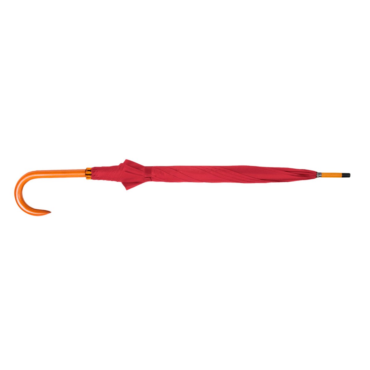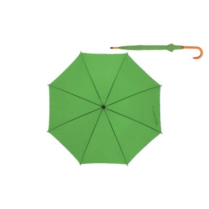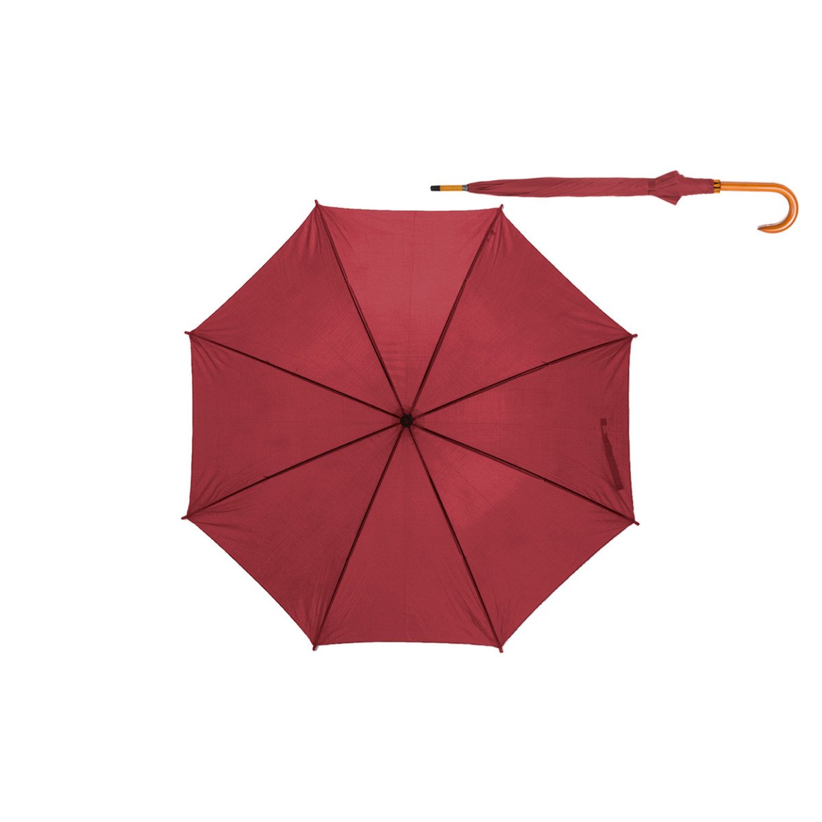 Paraguas automático de poliéster 190T. Puntera y mango curvo de madera. 8 Gajos.