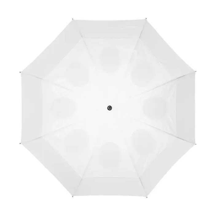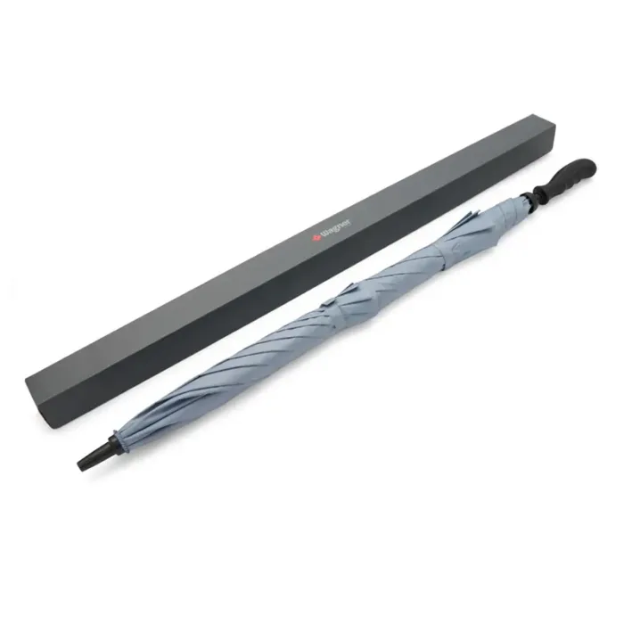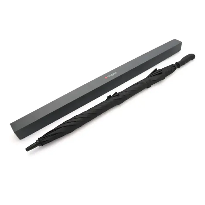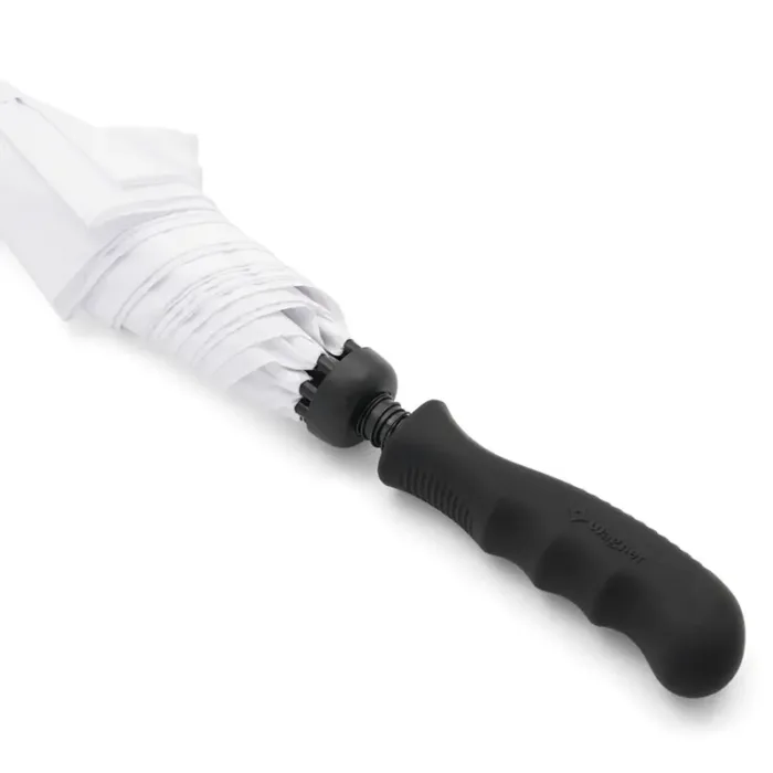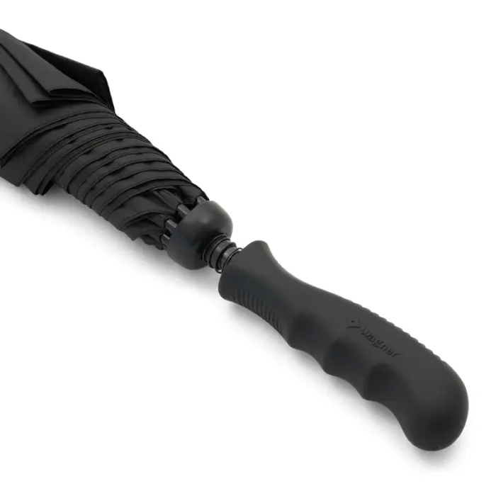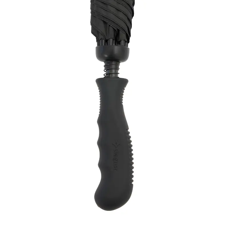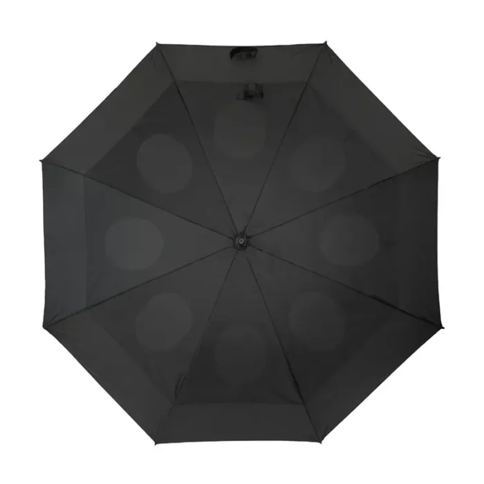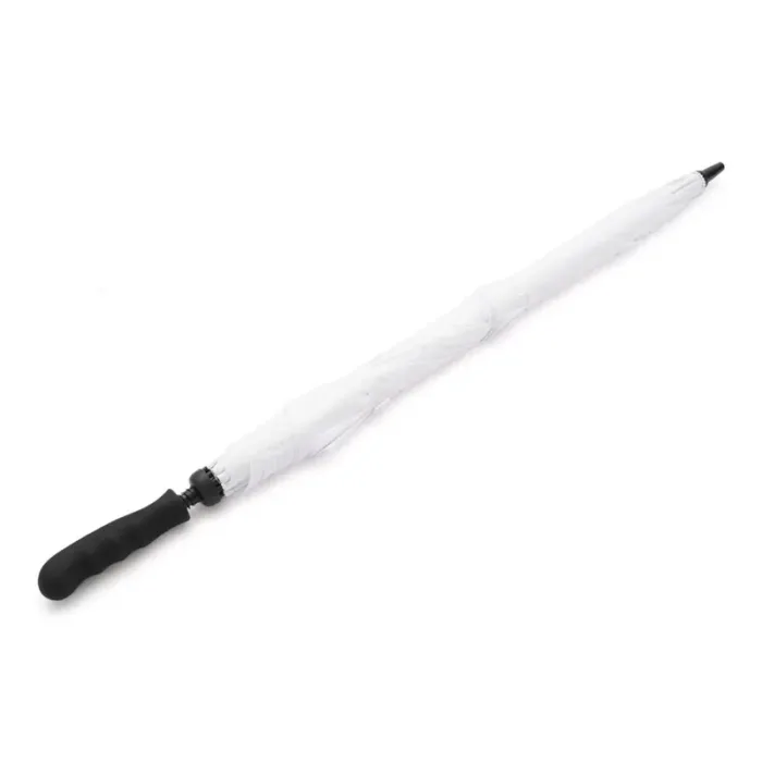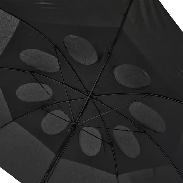 Paraguas de doble capa de alta resistencia al viento, impermeabilidad y calidad. Posee un robusto marco de 8 varillas de apertura y cierre manual, realizado con fibra de vidrio super ligero y diseñado para soportar lluvias y vientos fuertes. Mango de plástico cubierto con una goma con reborde para un agarre cómodo y no deslizante en condiciones de humedad. El paraguas de doble capa permite que el viento atraviese la tela para evitar que se pueda romper. Ideal para golfistas. Medidas: Largo 97 cm x diámetro 150 cm.