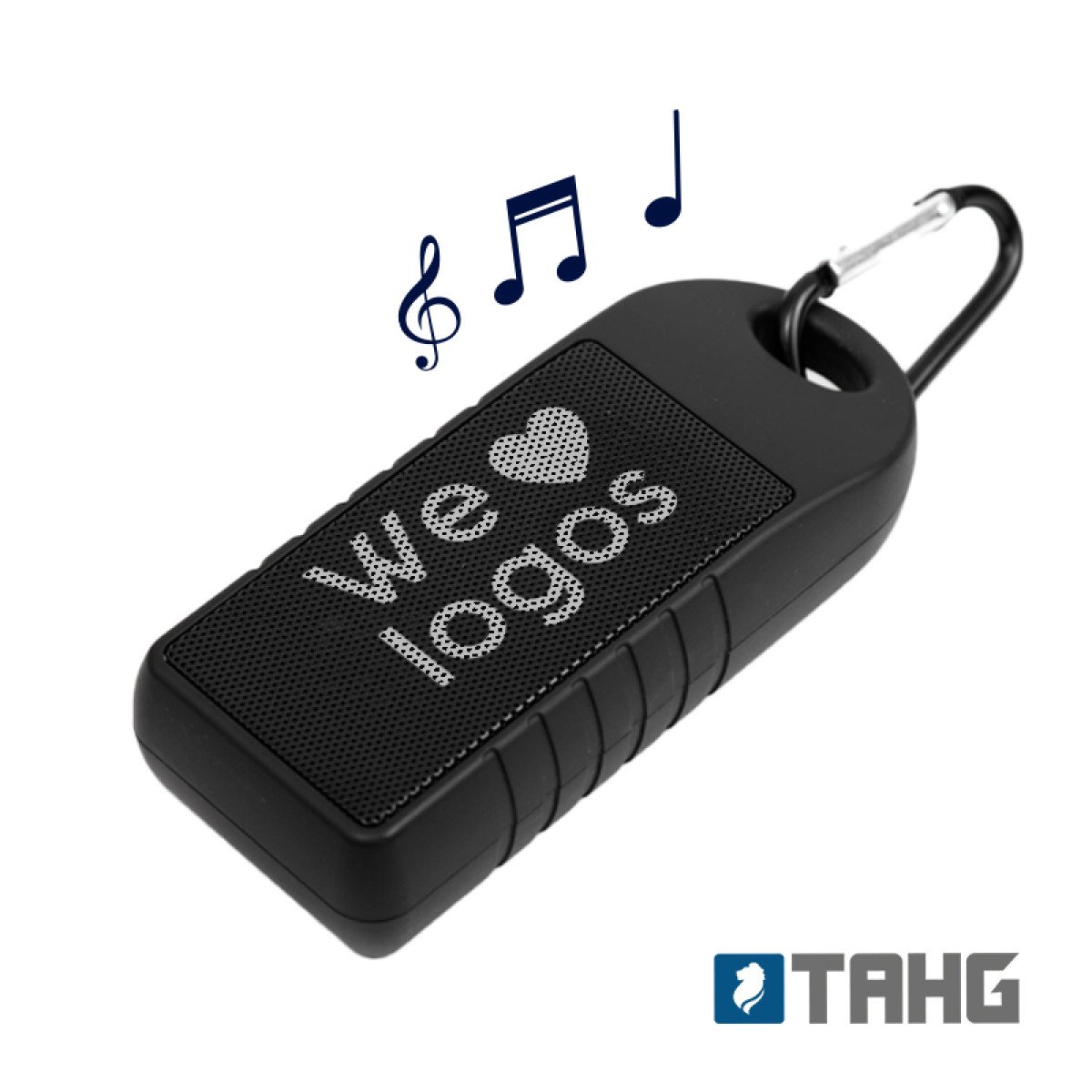 Parlante portátil con tecnología Bluetoothv 5.0. Es resistente a las salpicaduras de agua (no es resistente a ser sumergido). Realizado en combinación de ABS y Silicona, con gancho mosquetón para colgarlo o transportarlo. No incluye micrófono manos libres. Batería de 350mAh | Potencia del parlante: 1W | Conexión3.7V/500mA | Alcance: 10 metros | Peso: 140g | Medidas120 x 50 x 27mm | Tahg