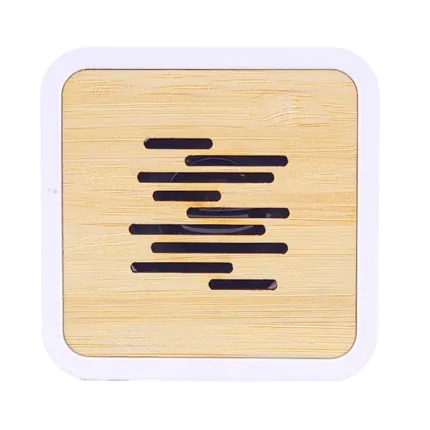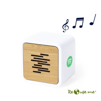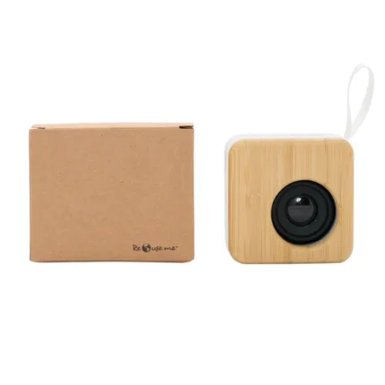 Parlante portátil fabricado en bambú y PLA compostable, combinando tecnología avanzada con materiales sustentables para ofrecer una experiencia de sonido única y amigable con el medio ambiente.