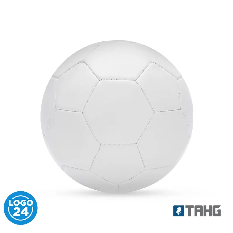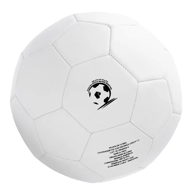 Pelota de fútbol realizada en PVC con terminación mate. De 32 gajos. Colores: gris, negro y blanco. Espesor 2.5 mm. y 400 grs. (5% tolerancia).