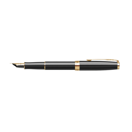 Pluma de acero inoxidable dorada con punta media. Este modelo es el símbolo de la elegancia y una muestra clásica de estilo refinado de la marca. Incluye estuche con el logo de Parker. Tinta Negra.