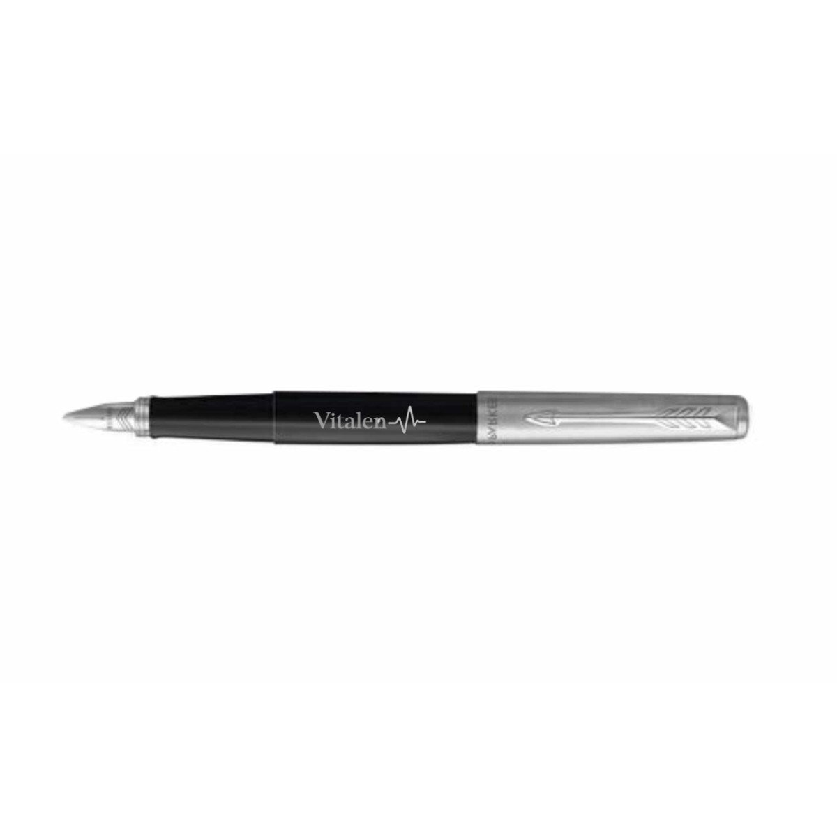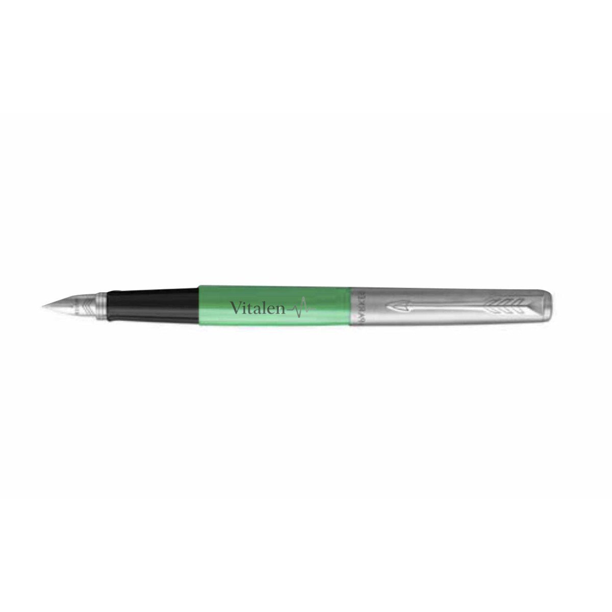 Pluma Fuente con cuerpo plástico y tapa de acero inoxidable, de punta media