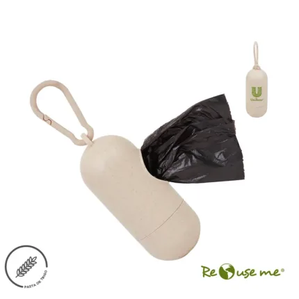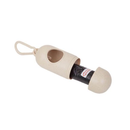 Portabolsas de bolsitas sanitarias, facilita el transporte de las bolsas de residuos durante el paseo de las mascotas. Realizado en combinación de PP y Wheat Straw, pasta de tallo de trigo, un material sustentable que disminuye el consumo de plásticos vírgenes.