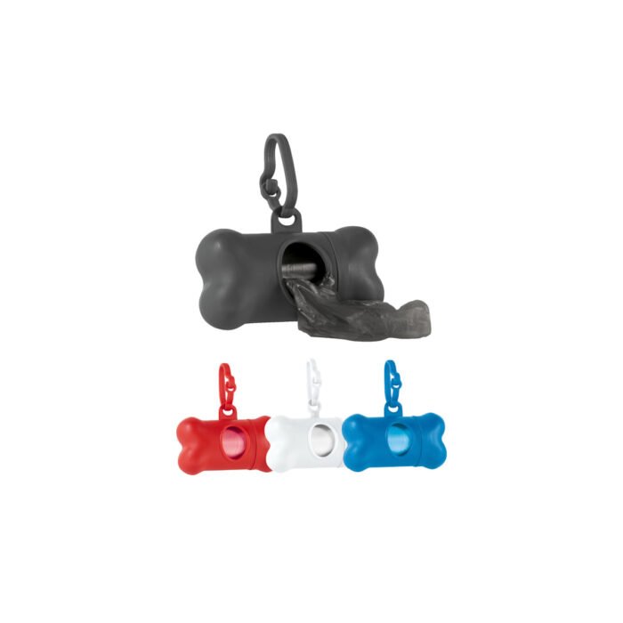 Dispenser de bolsas sanitarias para mascotas en forma de hueso. Incluye 20 bolsas de plástico sanitarias. Tamaño cerrado: 111 x 21 x 15 mm Material Polipropileno (PP)