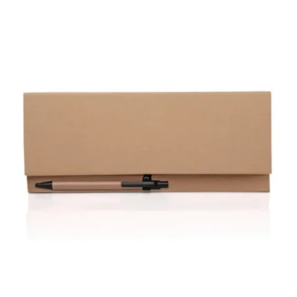 Incluye bolígrafo ecológico retráctil con detalles en plástico color negro.