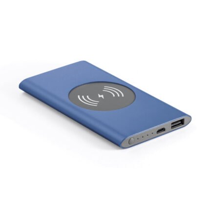 Power Bank y cargador inalámbrico de aluminio con batería de polímero de litio. Cuenta con una capacidad de 4000 mAh y una vida útil de mas de 500 ciclos. Tiene una entrada de 5V/2A, salida de 5V/2A y LED con indicador de carga. Incluye un cable USB/micro USB para cargar la batería y es suministrado en una caja de regalo