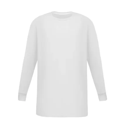 Remera de manga larga unisex en corte slim fit, con cuello redondo y puño de ribb de algodón. Esta prenda está confeccionada 100% en algodón 24/1 peinado, un recurso ecológico renovable y sostenible.