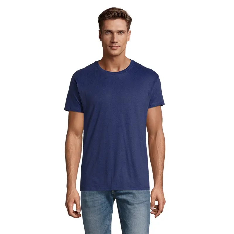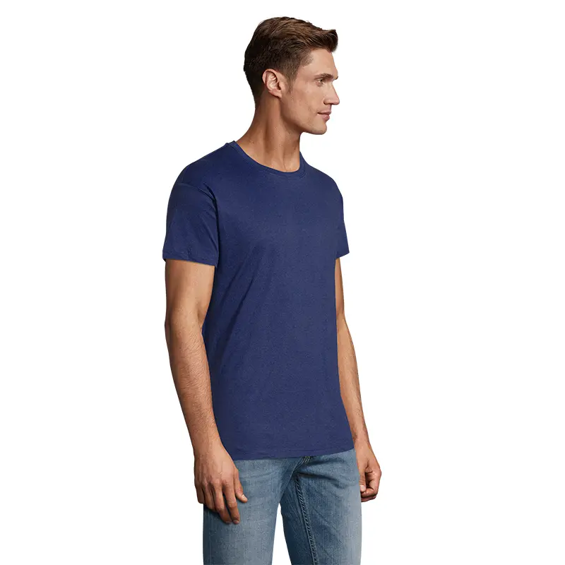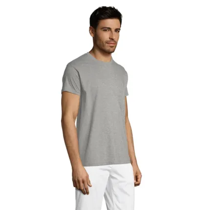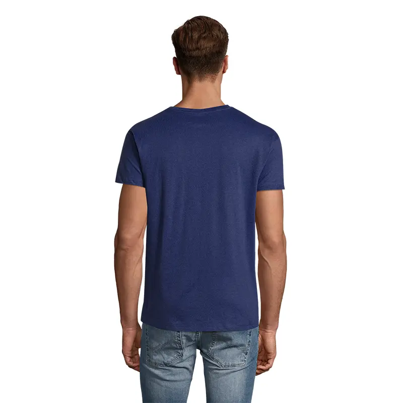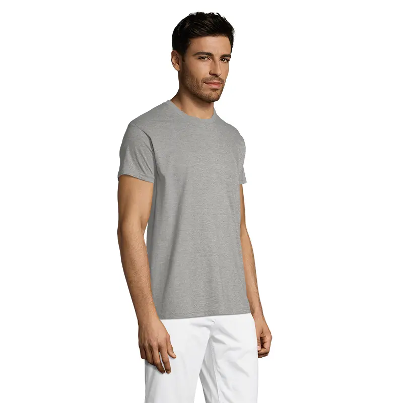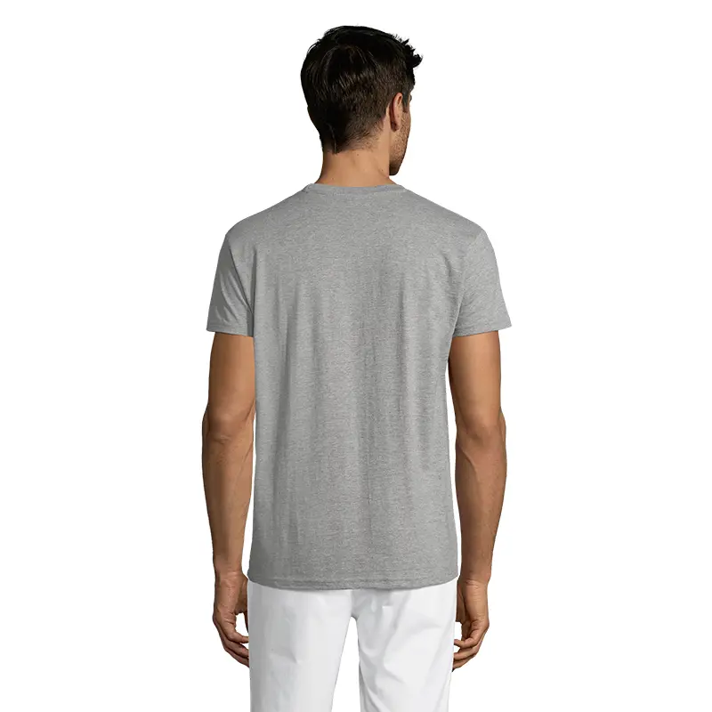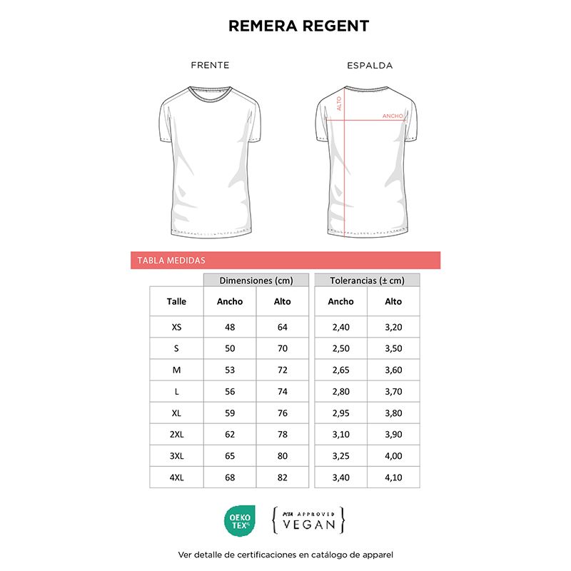 Remera de manga corta de corte regular, confeccionada en Jersey de 150g, 100% algodón semi-peinado, diseñada en formato tubular (sin costuras a los costados) y cuello con tapacosturas.