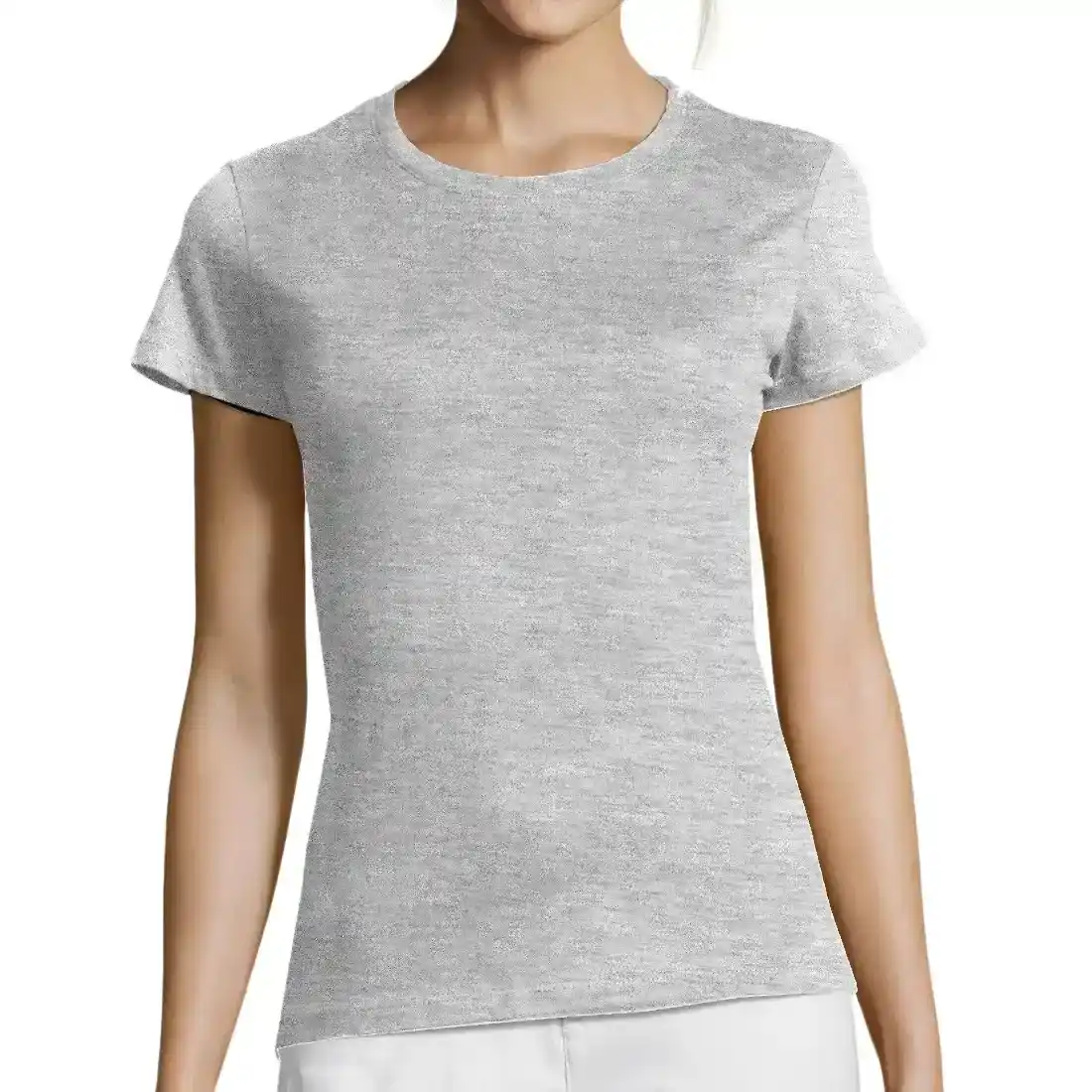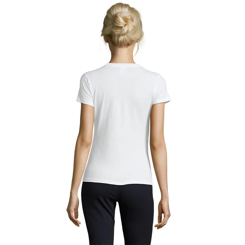 Remera de manga corta de corte entallado, confeccionada en Jersey de 150g, 100% algodón semi-peinado, con costuras laterales y cuello con tapacosturas.