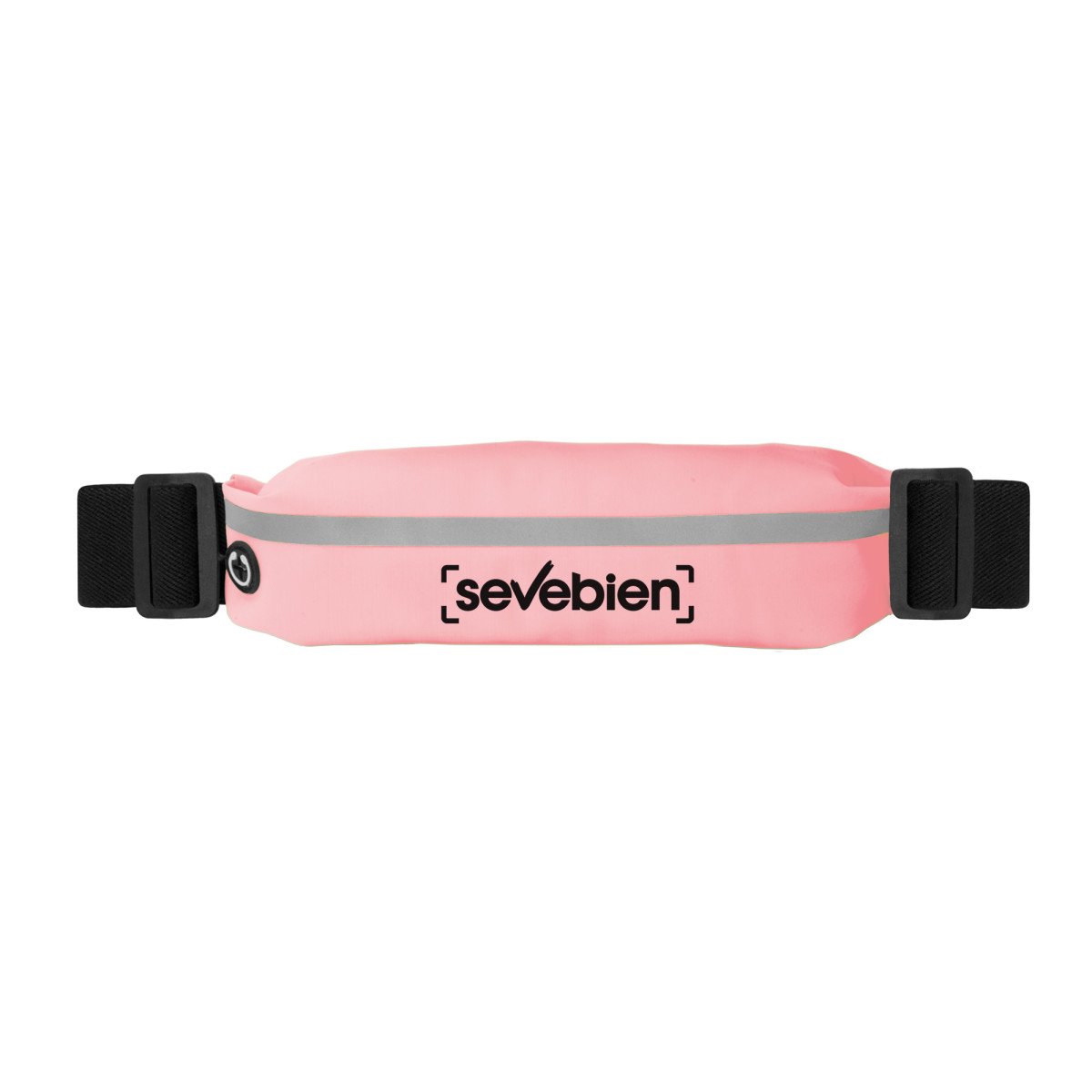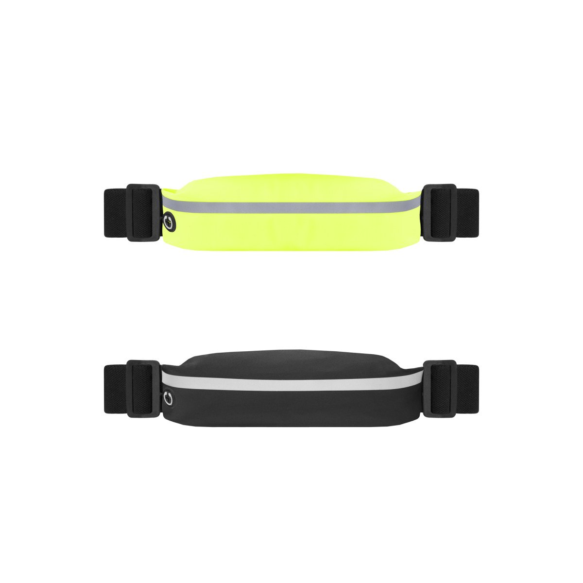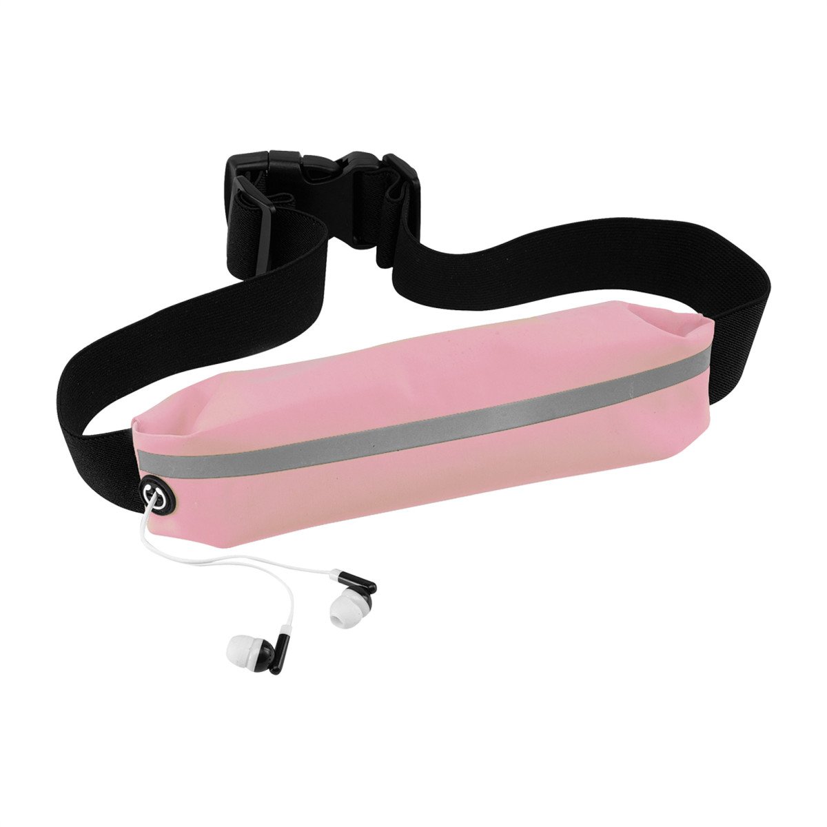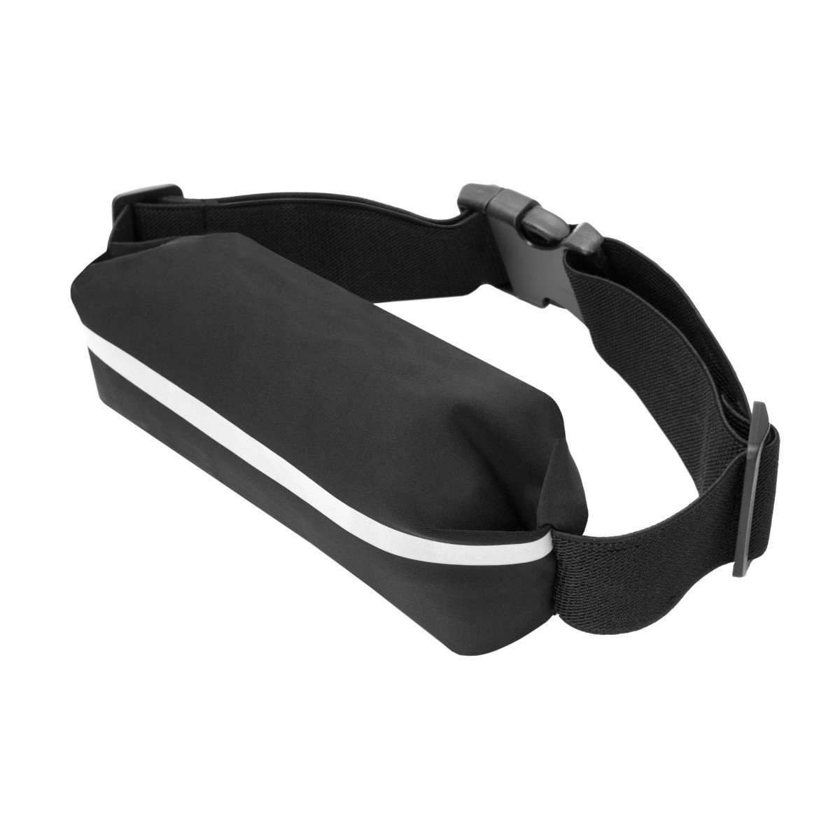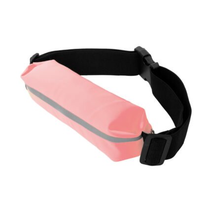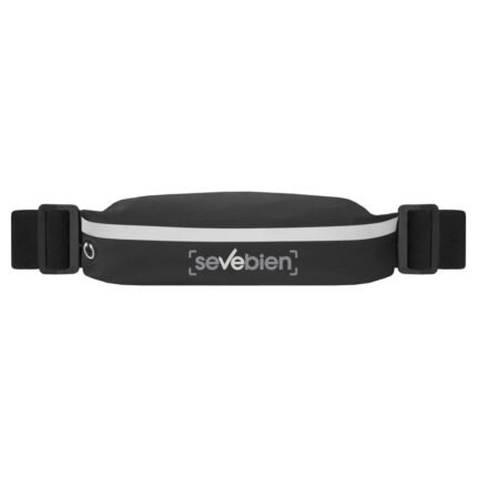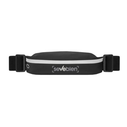 23 cm. x 5 cm. Poliamida. cangurera / Riñonera deportiva. Unico compartimento con cierre metálico, salida para auriculares, faja reflectante y correas elásticas con longitud aproximada de 88 cm. El material es impermeable.