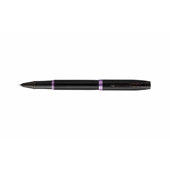 Rollerball de punta fina, con acabados minimalistas y elegantes completamente negros combinados con anillos de color, audaces y vibrantes. Tinta Negra.