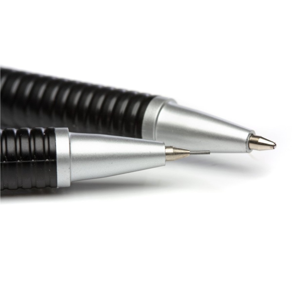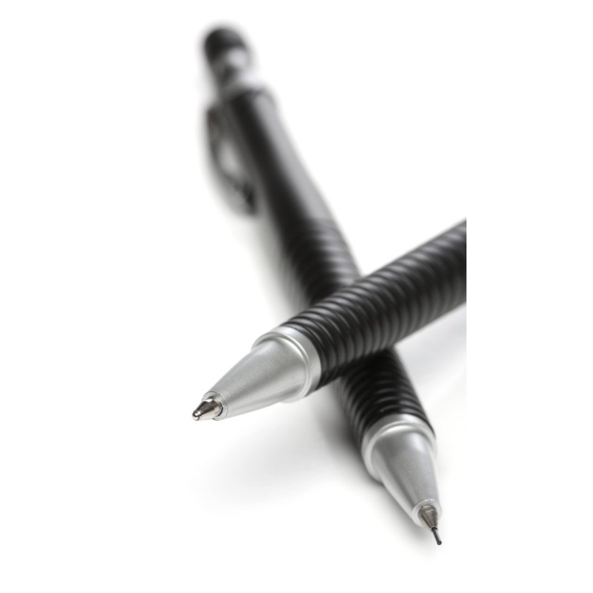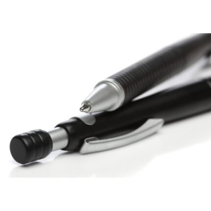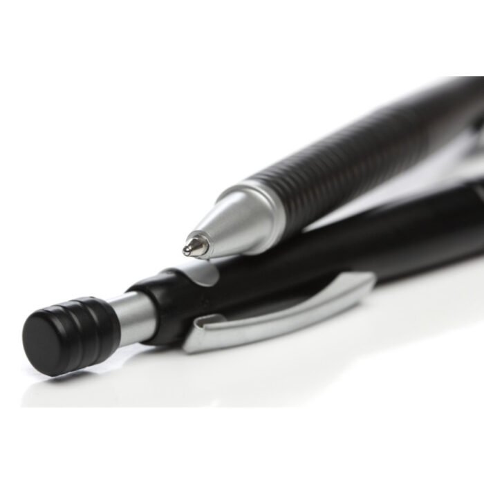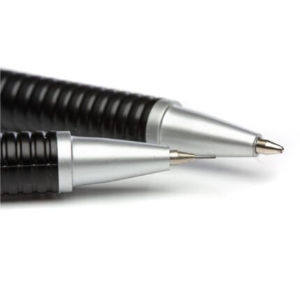 Ambos con cuerpo plástico negro, clip y punta gris metalizada.