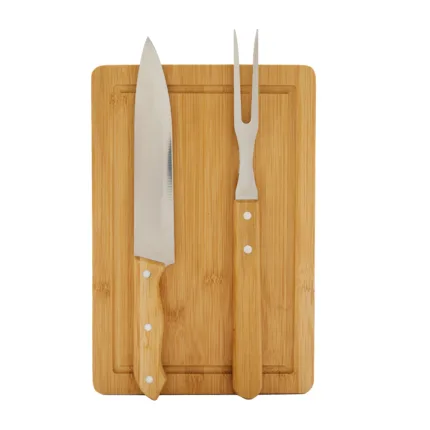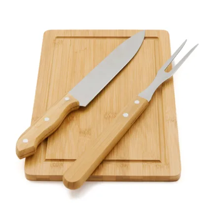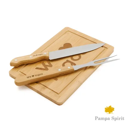 El set de asado Roti contiene: tenedor y cuchillo de 33 cm, ambos con mango de madera y, tabla de bamboo de 30 x 20 x 1,2 cm. Este set incluye todo lo que necesitas, ideal para los amantes del asado. Pampa Spirit