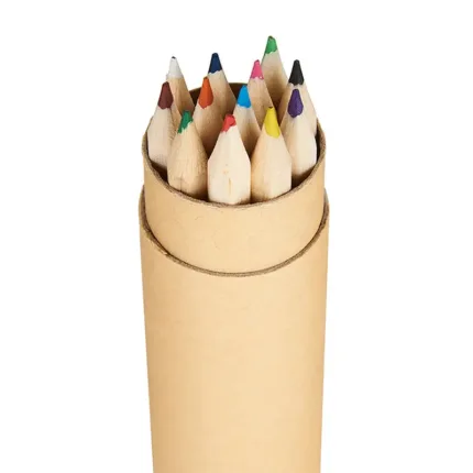 Set de 12 lápices de colores. Mina de 2mm. Realizado en madera de pino y cardboard ECO. ReUseMe.