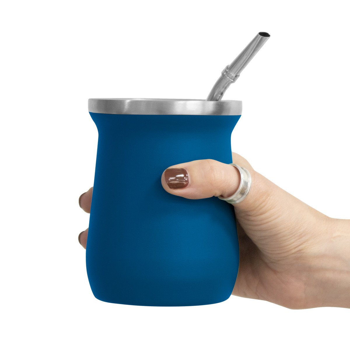 Ø 8 x 10,8 cm. Capacidad 300 ml. Mate Mug doble pared, sin tratamiento de vacío. Interior de acero 304 y exterior de acero 201. Mantiene la temperatura por más tiempo. Pintura Powder Coat (pintura mas duradera y resistente a la corrosión y el paso del tiempo). Bombilla de acero inoxidable 304 de 15,5 cm. Presentación en caja de regalo Kraft.
