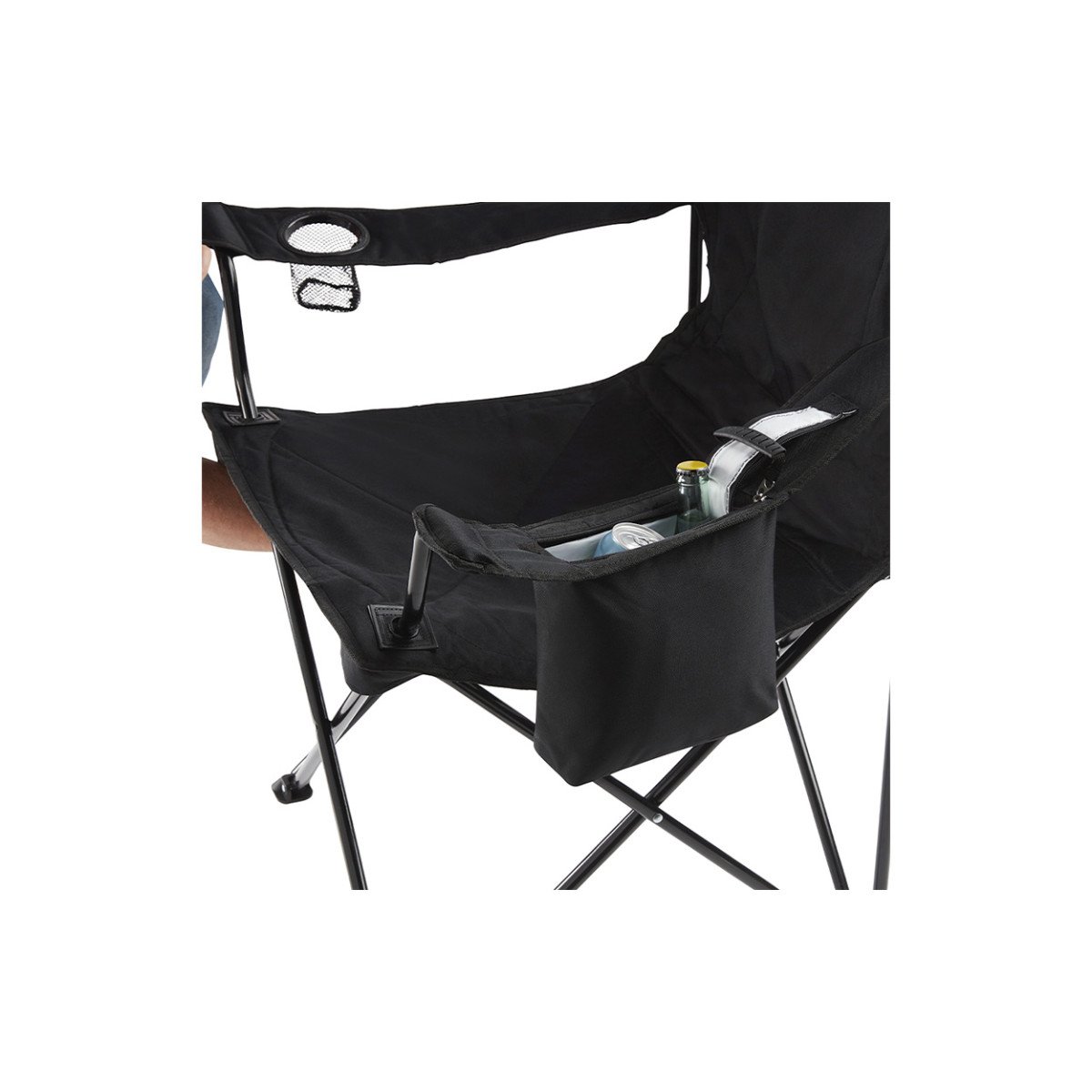 El cooler incluido en el apoyabrazos puede guardar hasta 4 latas. Respaldo y asiento acolchados que brindan comodidad por horas. Bolsillos laterales para guardado. Posavaso de red en apoyabrazo. Soporte adicional de red. Apoyabrazos ajustable para mayor comodidad. Funda para transportar incluida. Soporta hasta 136kg de peso.