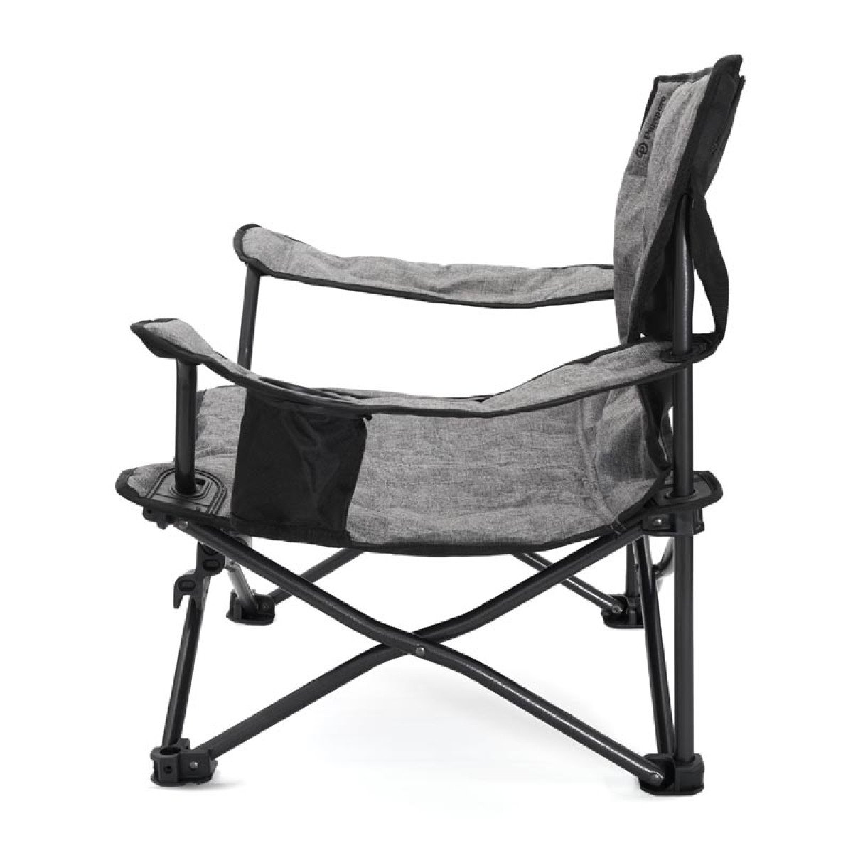 Silla baja plegable confeccionada en Polyester 600x300D/PVC, acolchado de espuma. En el apoyabrazo, cuenta con soporte de mesh para sostener bebida. Incluye funda de transporte. Material de la estructura: Acero 16*0.8/1.0mm. Medidas: 61 x 53 x 53 cm (Altura x Longitud x Ancho). Ideal para llevarla a la playa o para un día de camping. Pampero.