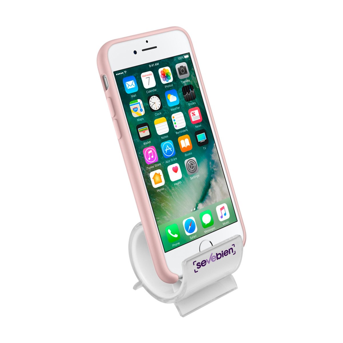 Ø 5,5 x 5 cm. Plástico PS. Soporte para apoyar el celular. Plástico transparente en el exterior y Plástico blanco en el interior. El celular se apoya en el interior del soporte.