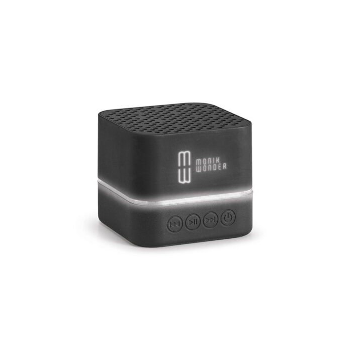 Personalizable con logo iluminado al grabarlo con láser, se puede grabar en todas sus caras.El altavoz ABS y acabado de gomaTiene transmisión Bluetooth 4.2Batería con autonomía superior a 2hs – con 300mAh.Puerto micro-USB Incluye cable 2 en 1: USB – micro USB para carga y micro USB – conector 3.5 tipo jack.