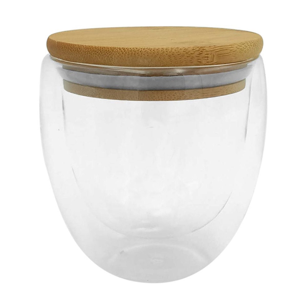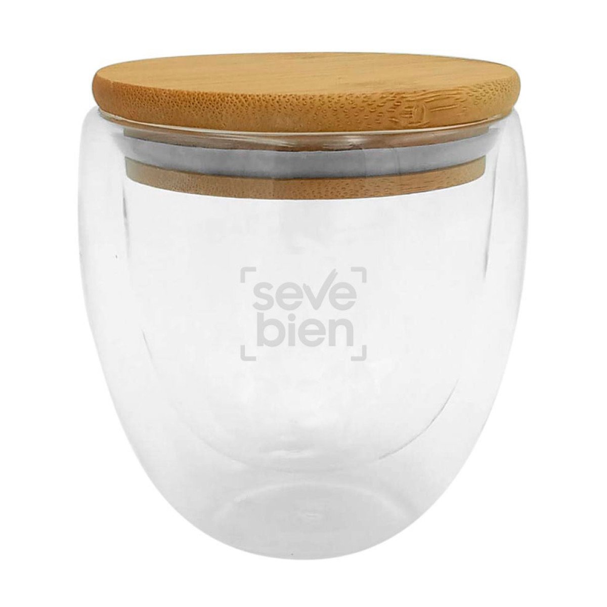 Ø 9 x 9,5 cm. medida de la taza y Ø 9 medida de la tapa de bambú. Capacidad 250ml. Vidrio y Bambú. Taza de doble vidrio con tapa de bambú que ademas se puede utilizar como posa taza/vaso. No pasa el calor. Apto para lavavajillas (únicamente la taza) . Presentación en caja de regalo Kraft.