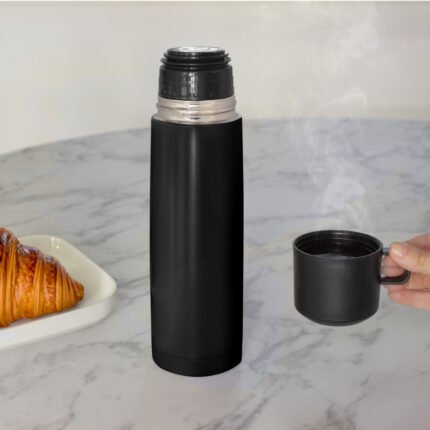 Disfruta de cada sorbo, caliente o frío.Termo con doble pared sellado al vacío. Tecnología vacuum. Acero inoxidable 304 interior / 201 exterior. Tapa y taza plásticas en color negro. Pintura acabado mate. Mantiene hasta 6 hs la temperatura de las bebidas calientes y hasta 10 hs la de las bebidas frías.Medidas: Ø 7 x 24 cm